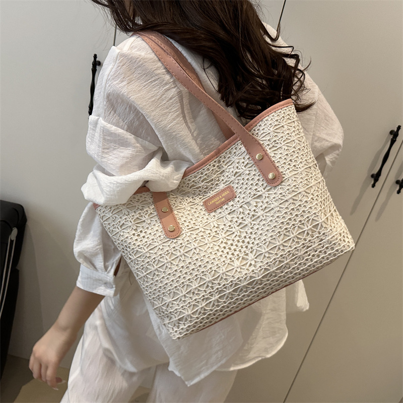 Главная страница > Пляжная сумка-шоппер из соломы для женщин, большая вместимость, новый модный стиль 2025 года, универсальная сумка через плечо
