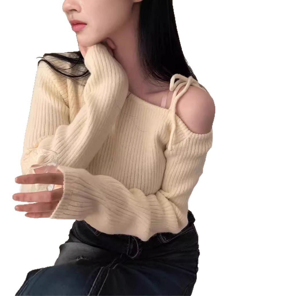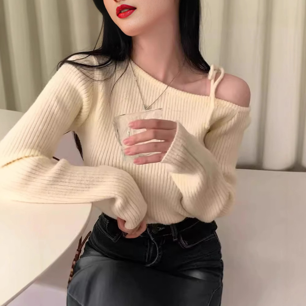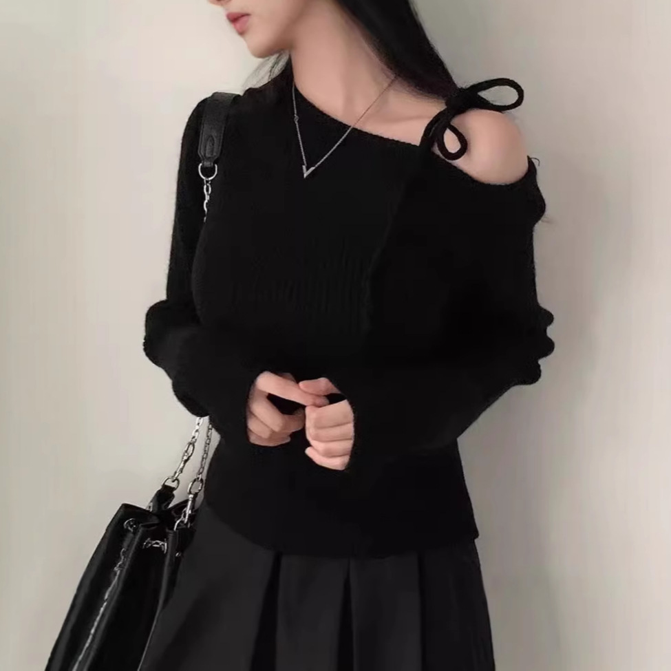 Главная страница > Корейская линия прекрасна осенью и зимой, нишевые ретро нерегулярный диагональный воротник с открытыми плечами