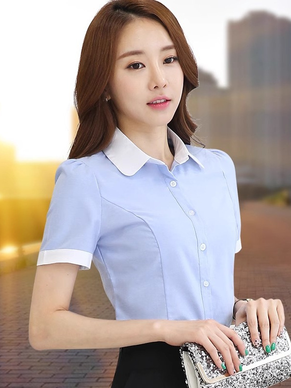 Главная страница > Синяя рубашка женская рубашка с короткими рукавами профессиональная одежда темперамент рабочая одежда