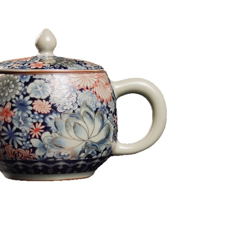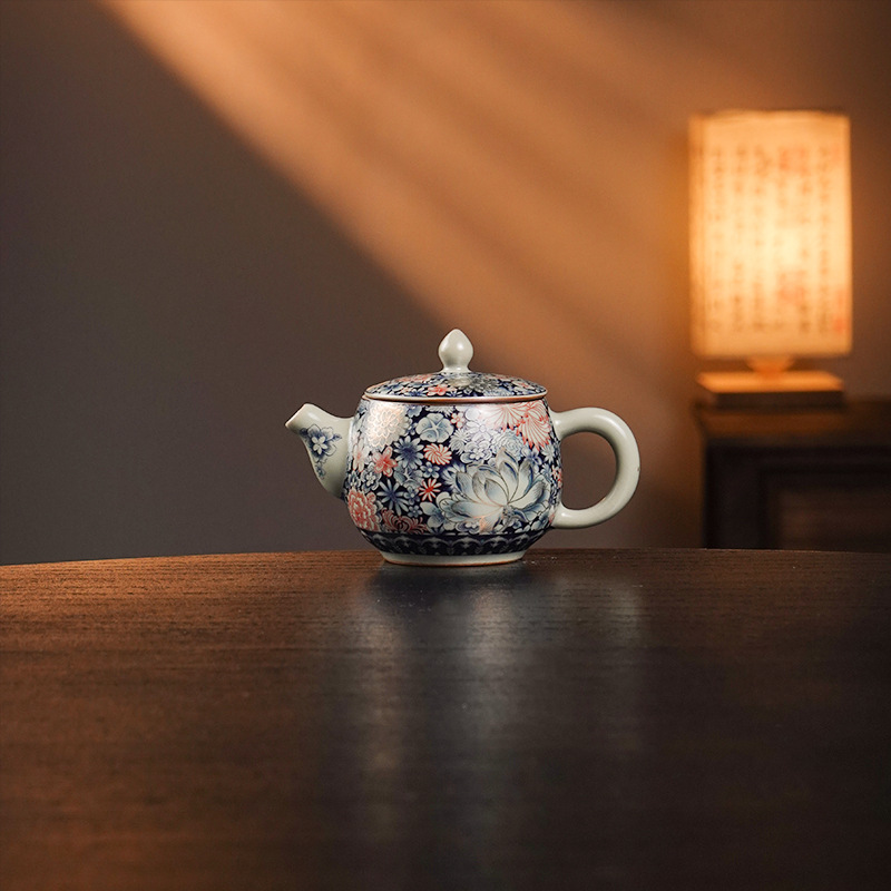 Главная страница > Jinglongtang шелковый золотой пион чайник Tianqing Ru Kiln сине-синий цветочный горшок Han плитка домашний эмалевый кунг-фу чайный сервиз
