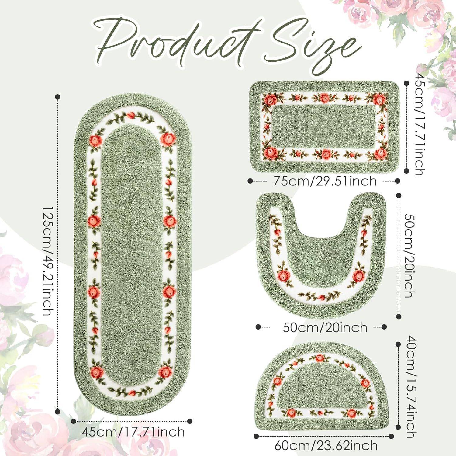 - Полукруг 40*60 + форма 50*50U + 45*75 + 45*125 овальный см, комплект из четырех предметов (стиранный низ из имитации кашемира)