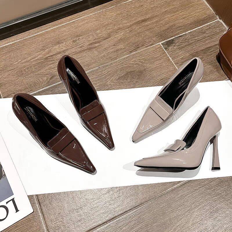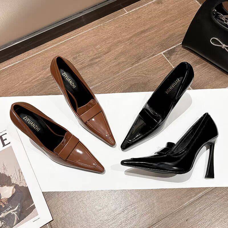 Главная страница > Черные туфли на высоком каблуке с тонким каблуком и квадратным носком от Ян Шулина, в стиле Шэнь Мэнчена, неглубокие туфли на очень высоком каблуке, французский ретро-стиль.