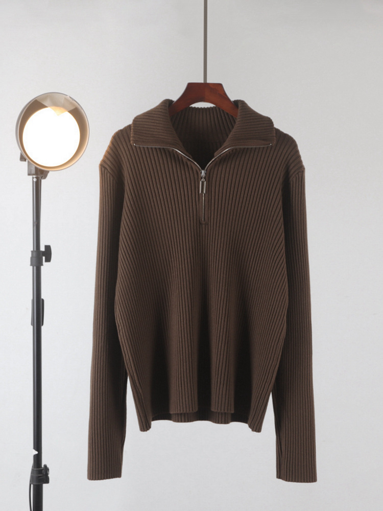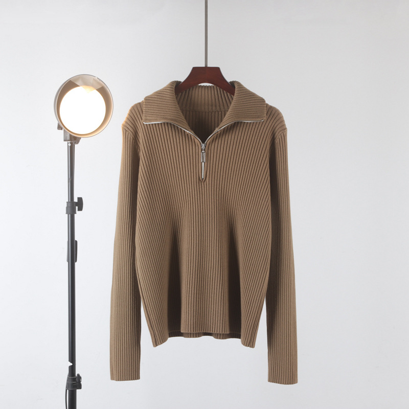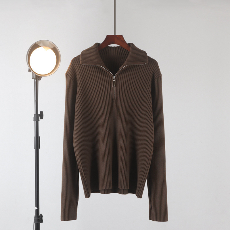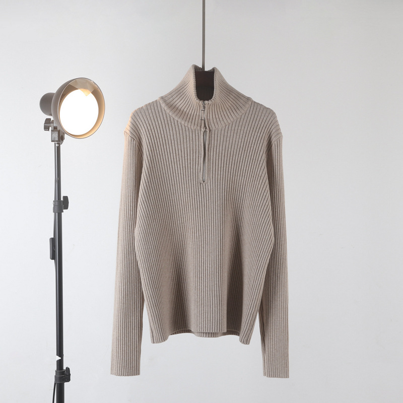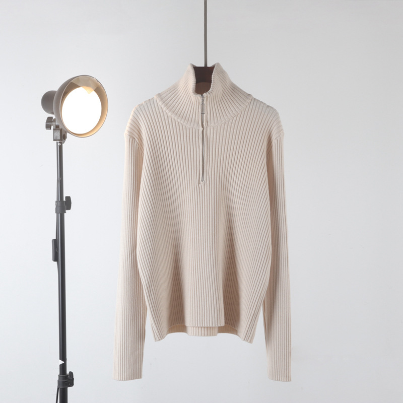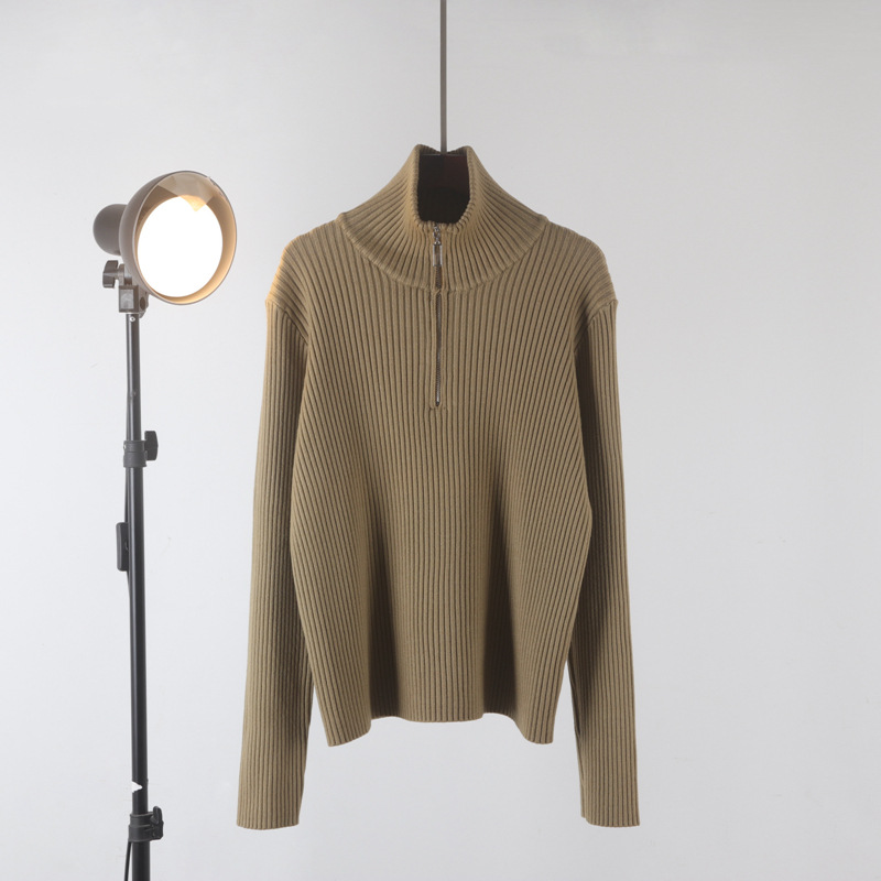 Главная страница > Новый свитер-водолазка на молнии из мягкой вязки для женщин, осень-зима 2025, утолщенный свободный базовый топ