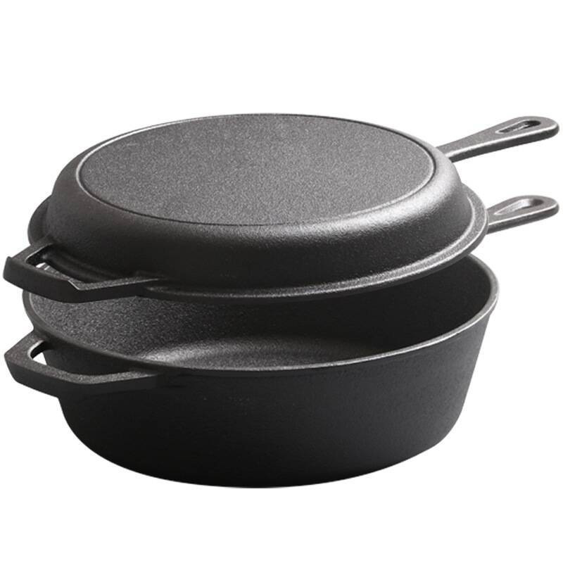 Чугунная кастрюля двойного назначения 26cm тушеная кастрюля без покрытия двойной кастрюля кастрюля универсальная кастрюля производитель оптовая кухня кастрюля