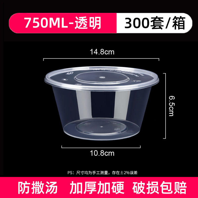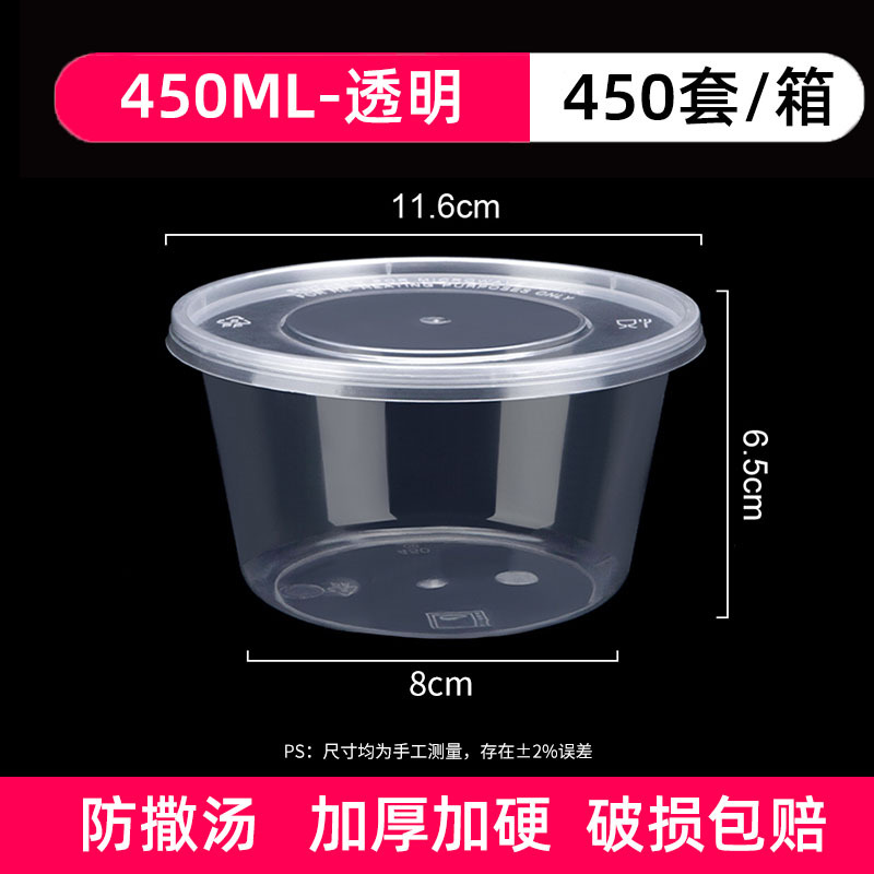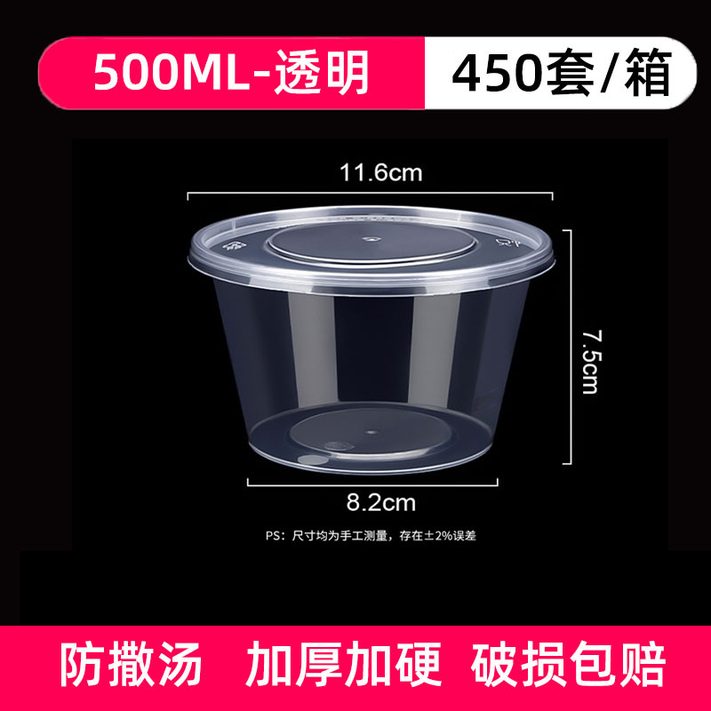 Одноразовые круглые суповые миски прозрачные фаст-фуд ланч-бокс утолщенный с крышкой на вынос для коммерческих пищевых упаковок