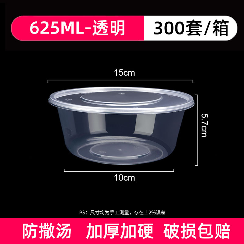 Утолщенный круглый прозрачный объем 625 мл (300 комплектов) с крышкой