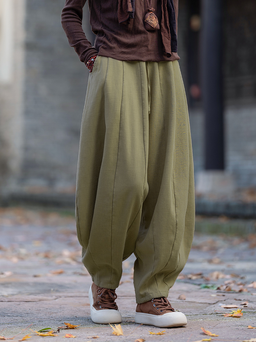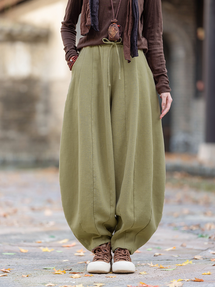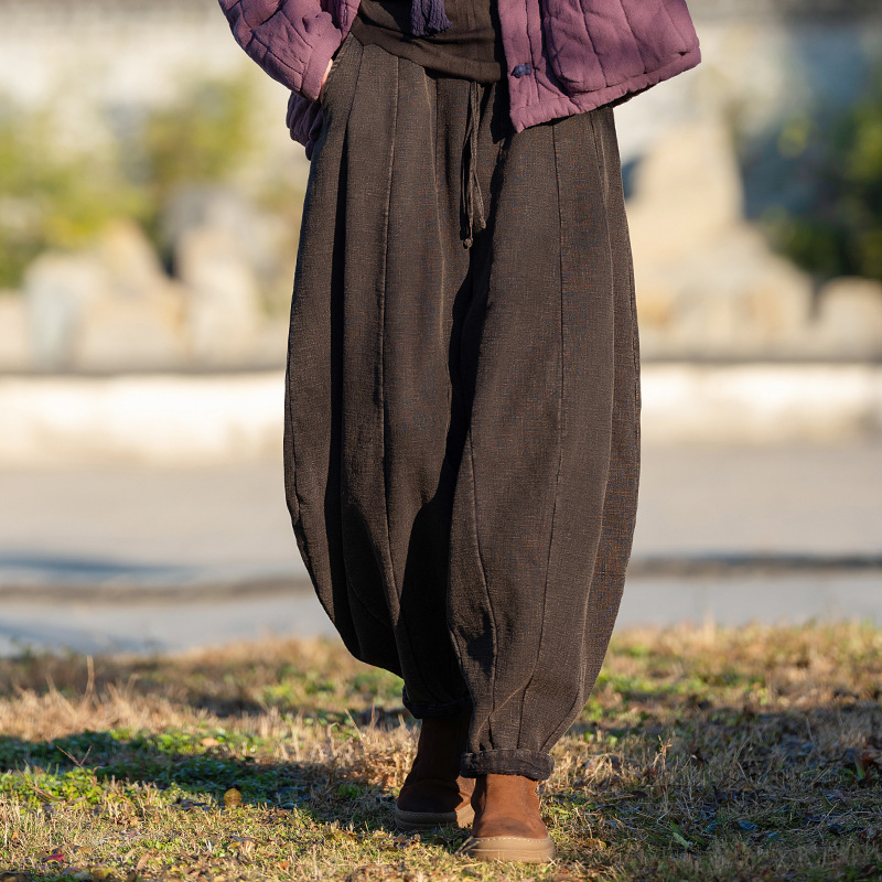 Главная страница > Новые зимние женские брюки-фонарики свободного кроя в стиле ретро из утолщенного рами с флисовой подкладкой на шнурке