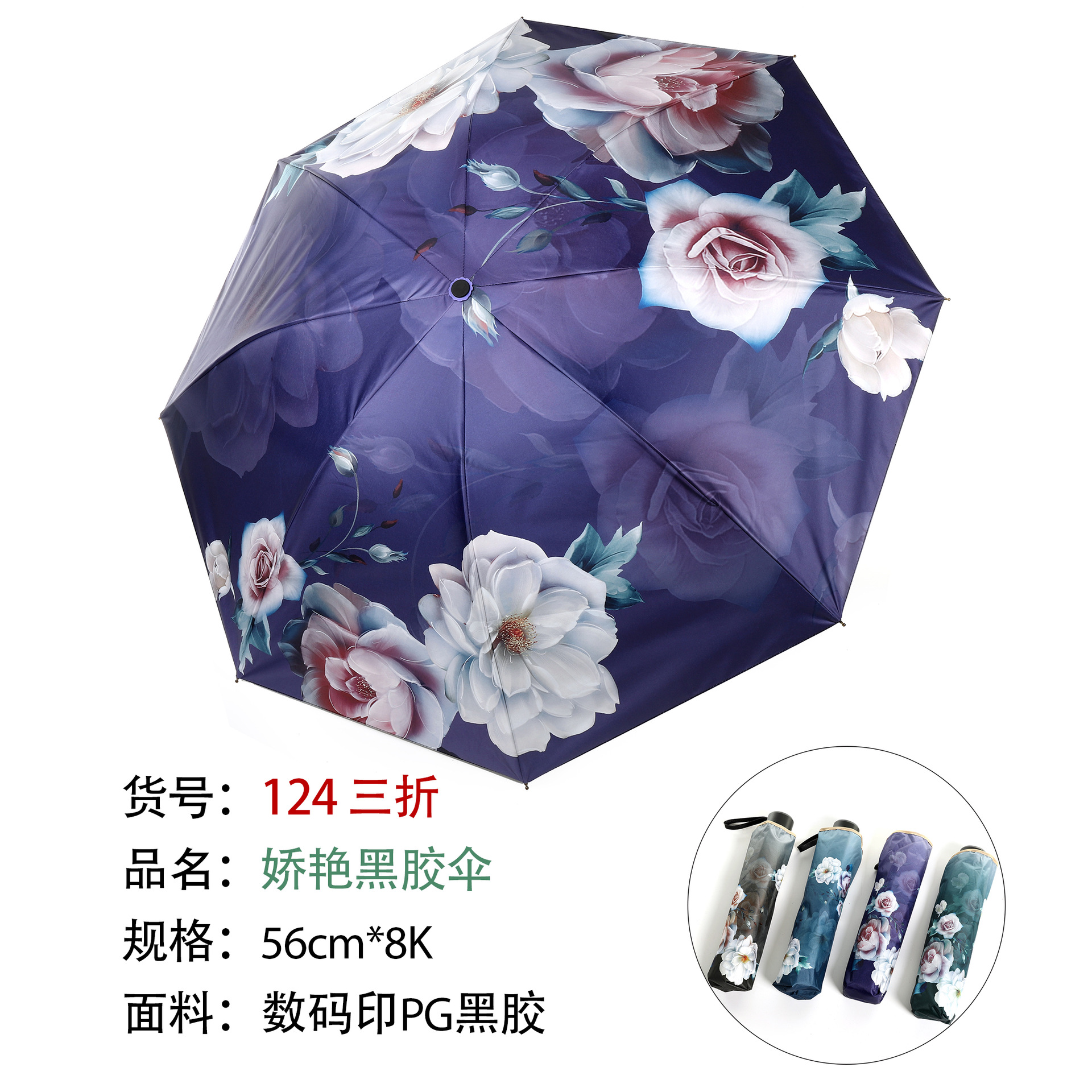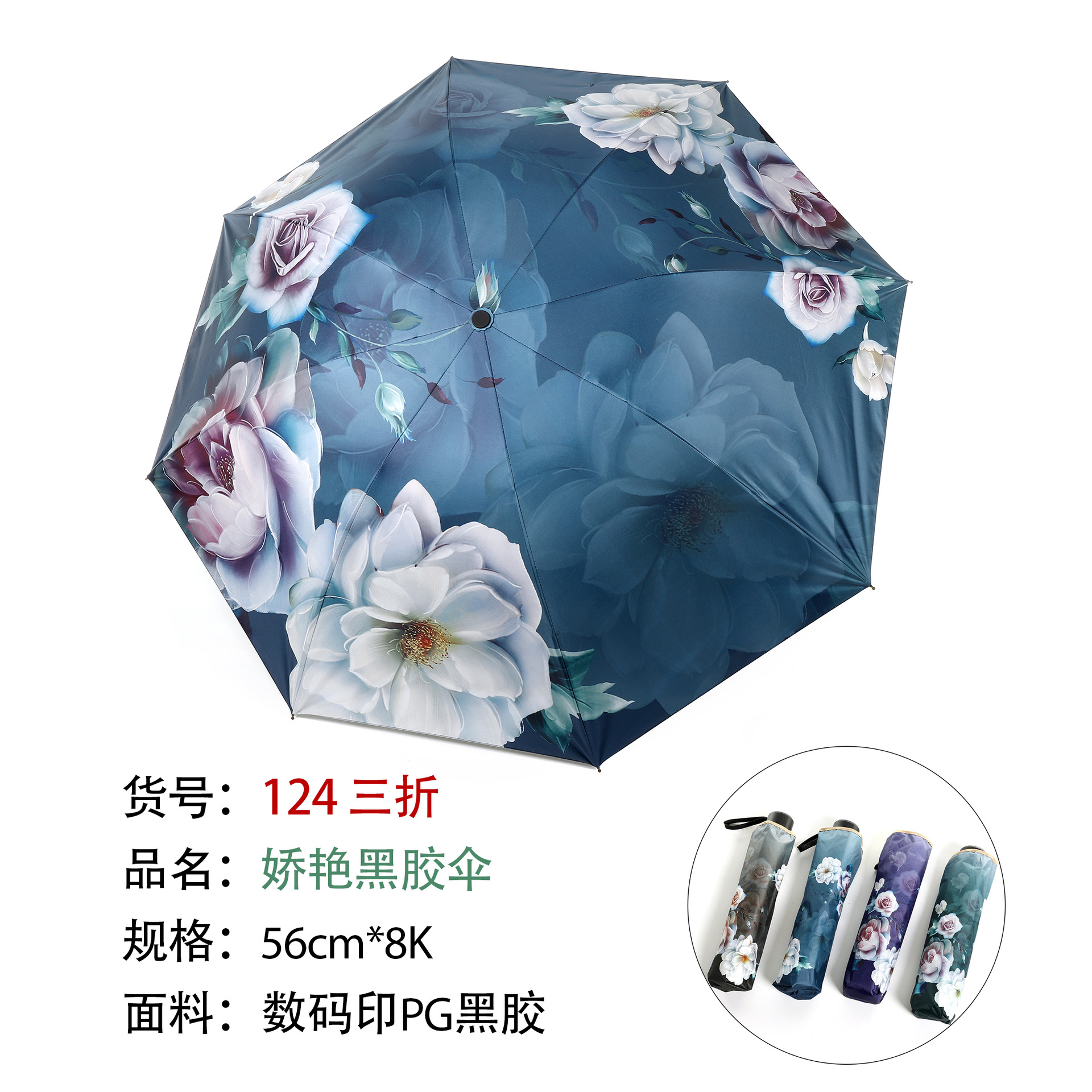 107 70% off Картина маслом Цветок Черный пластиковый зонт Голубой