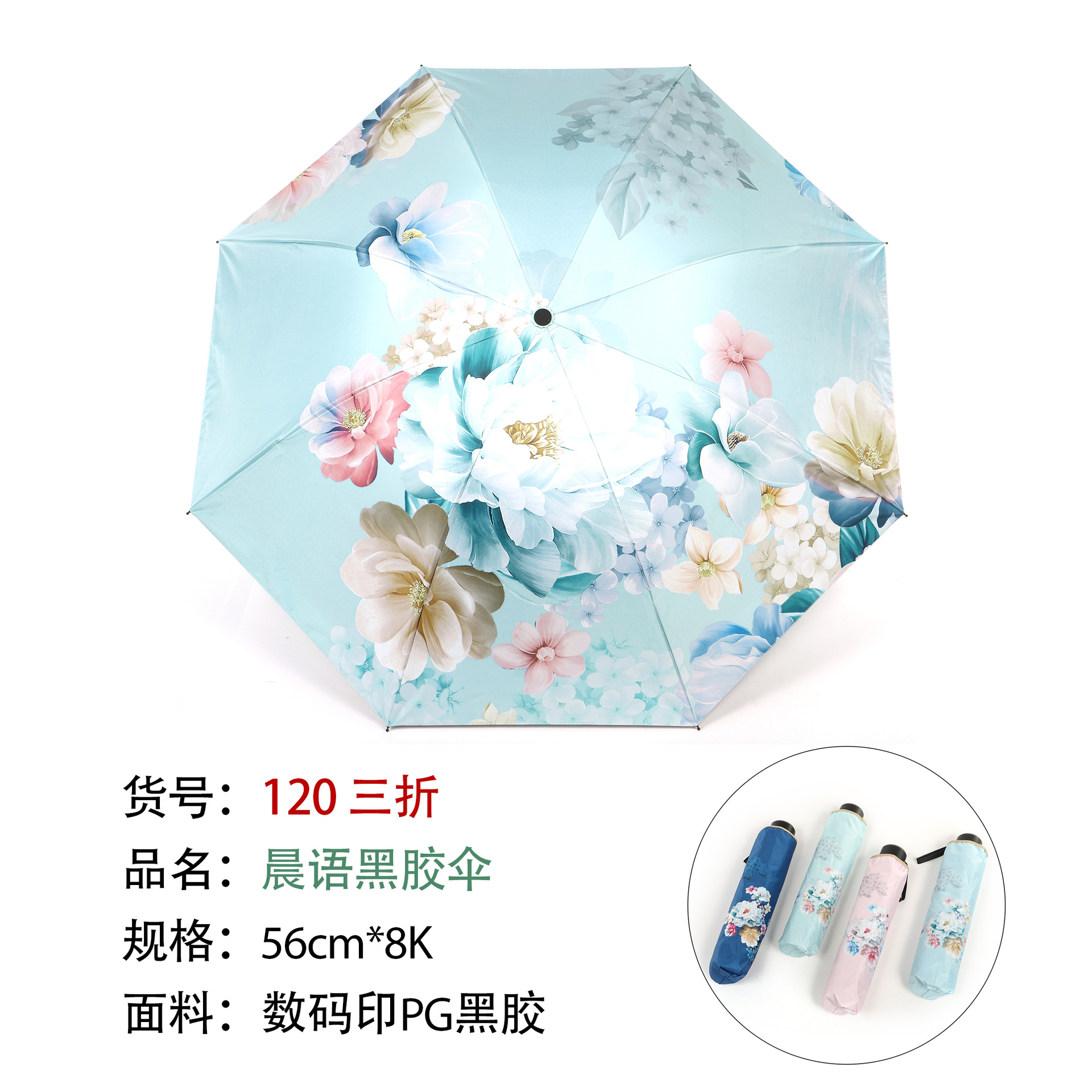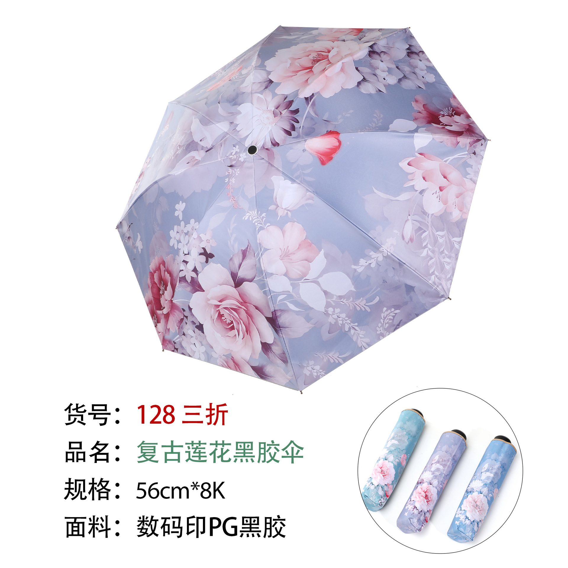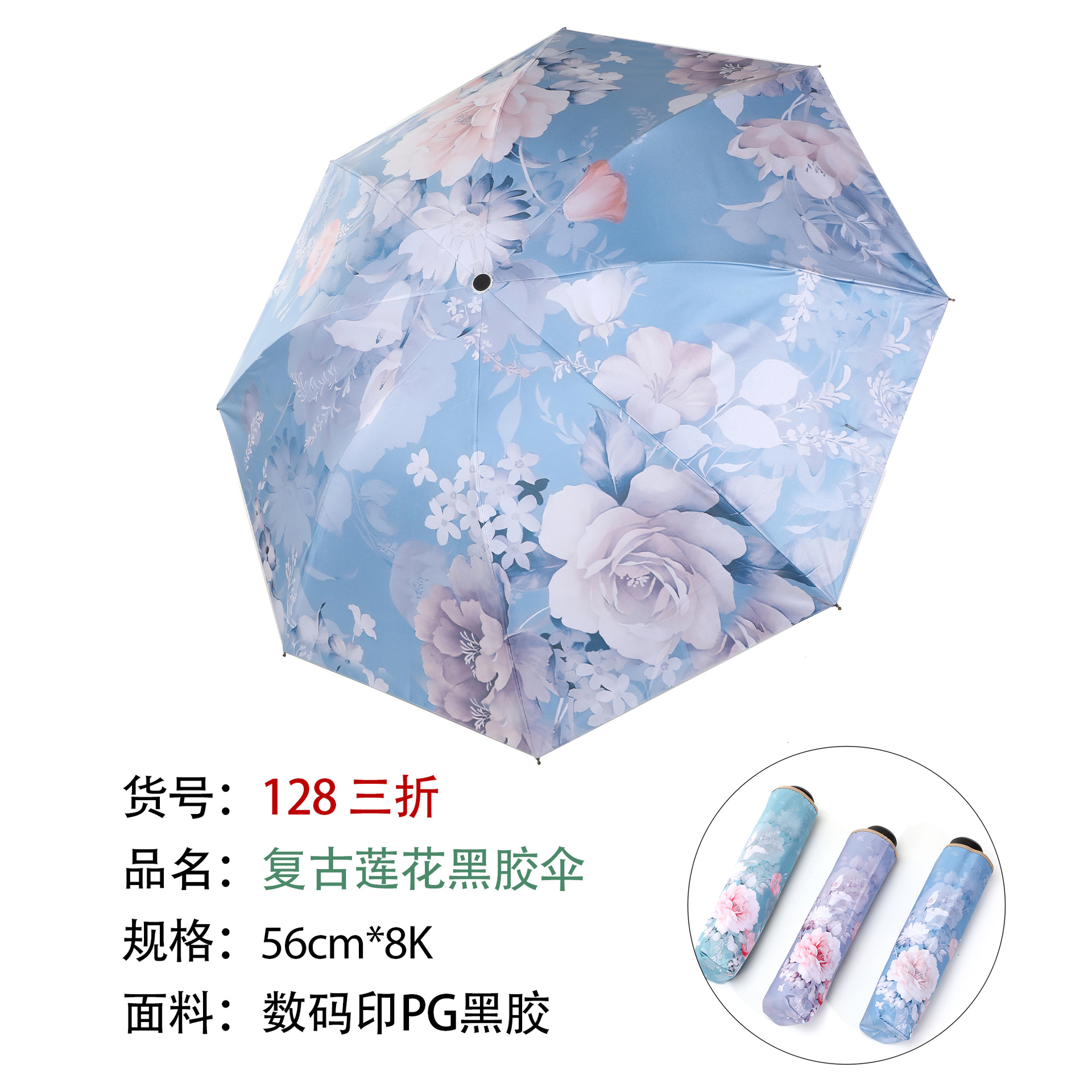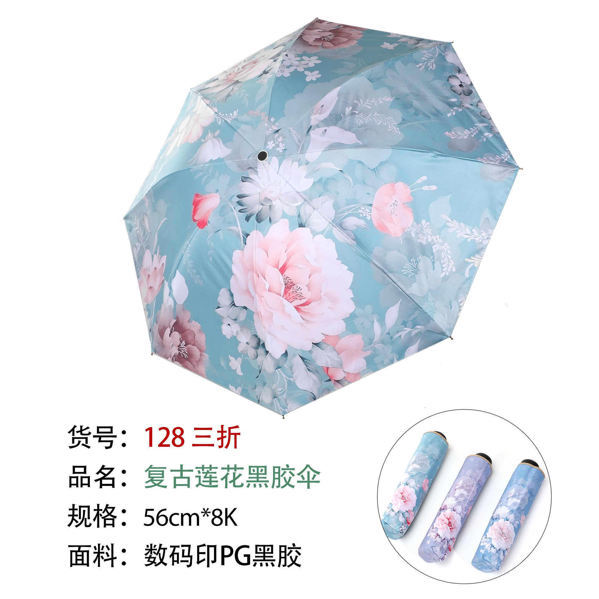 128 70% off Ретро Лотос Виниловый Зонт Голубой