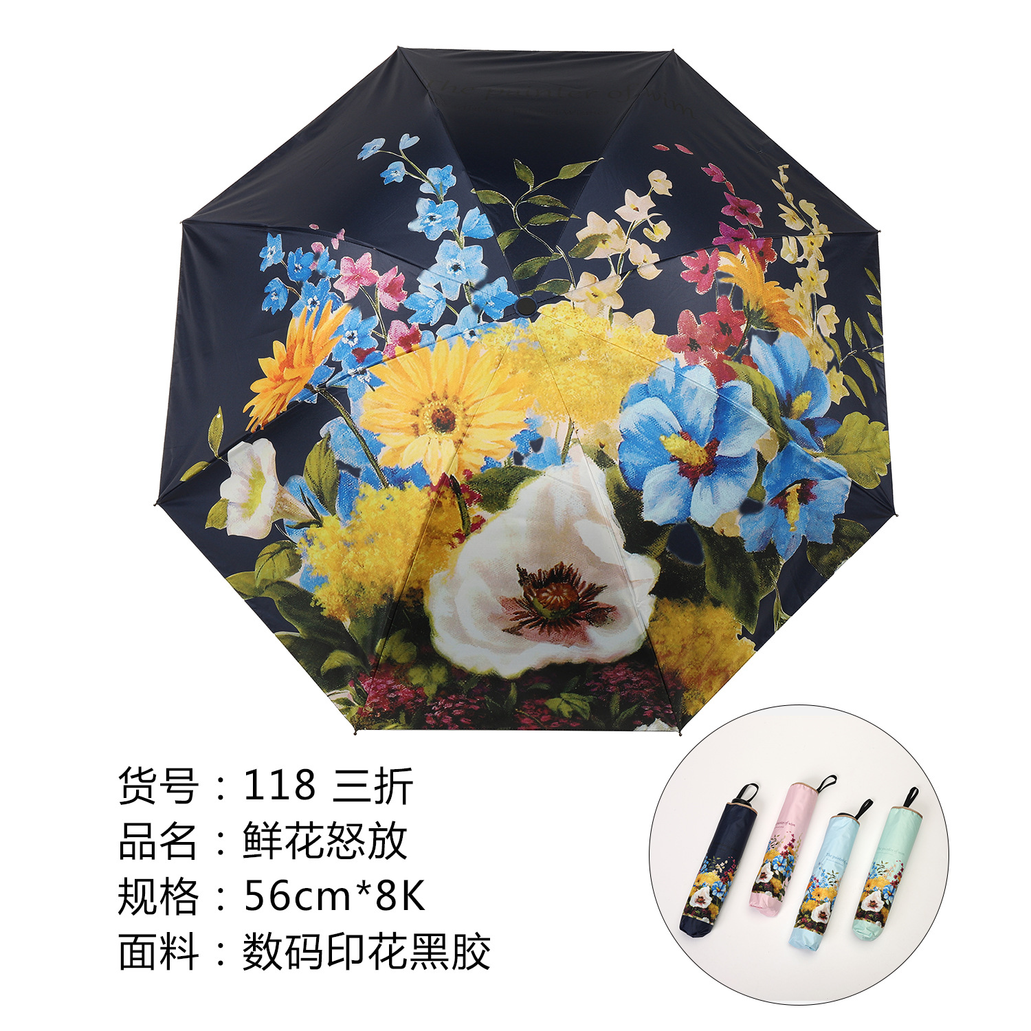 107 70% off Картина маслом Цветок Черный пластиковый зонт Синий