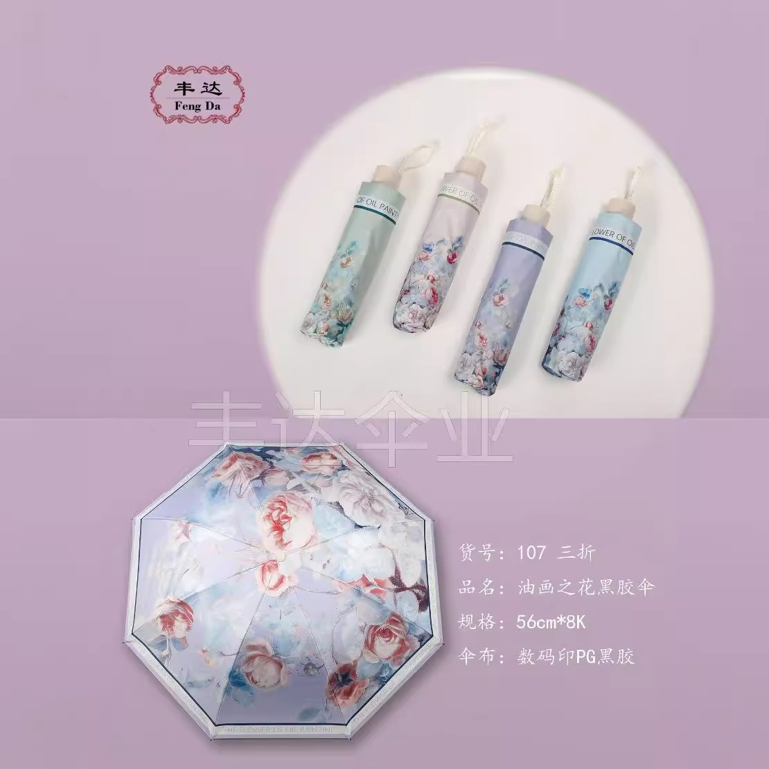 107 70% off Картина маслом Цветок Черный пластиковый зонт Фиолетовый