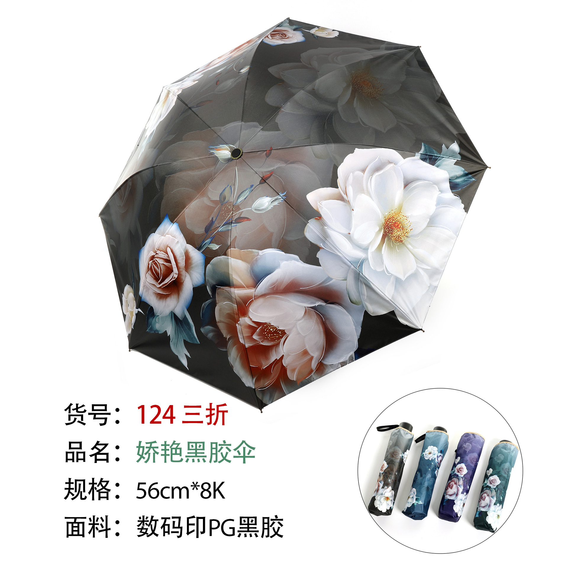 107 70% off Картина маслом Цветок Черный пластиковый зонт Белый
