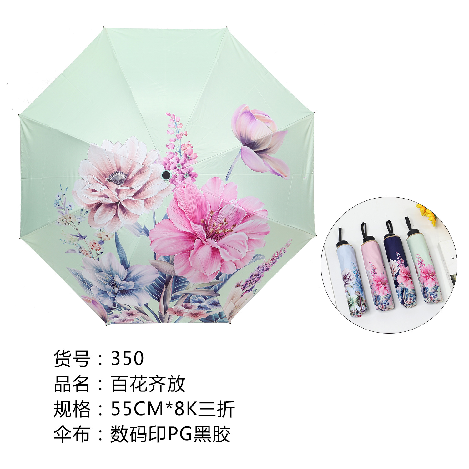 123 70% off Черный пластиковый зонт Blossom, светло-зеленый