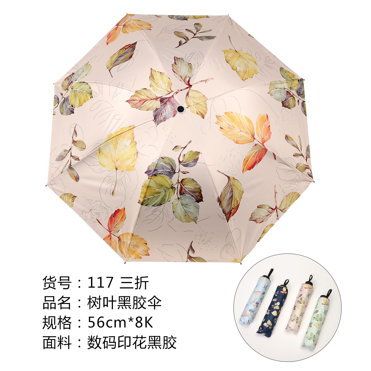 117 Виниловый зонт 70% off листьев светло-розовый