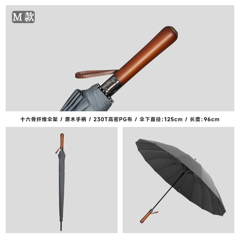 27-дюймовый 16-х костяный прямой деревянный ручной зонт премиум-класса — серый