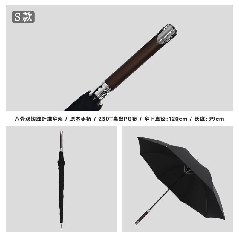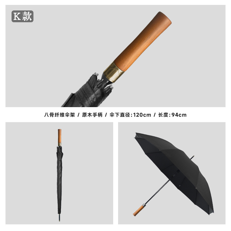 27-дюймовая модель с 16-ребристой высококачественной деревянной изогнутой ручкой, устойчивая к ветру - черный