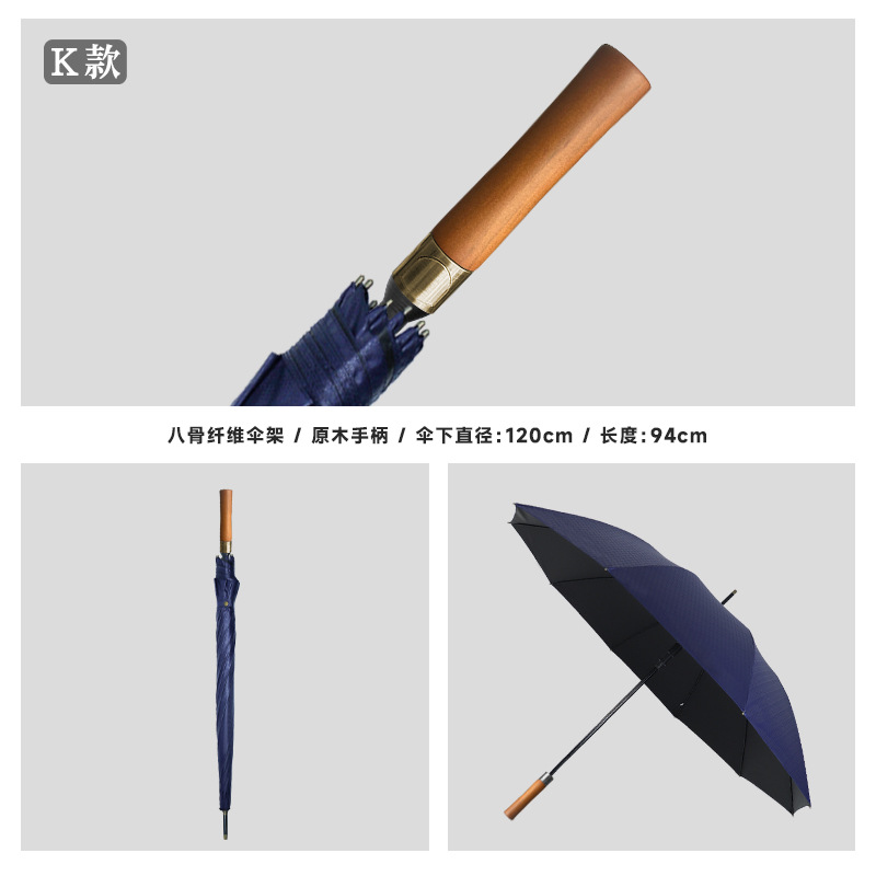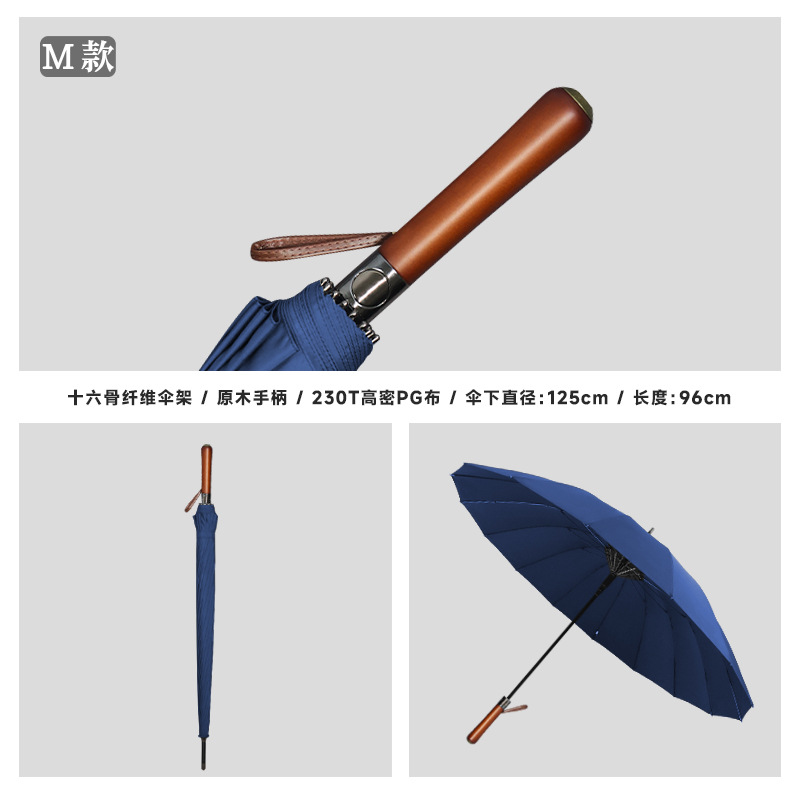 27-дюймовый 16-х костяный прямой деревянный ручной зонт премиум-класса — темно-синий