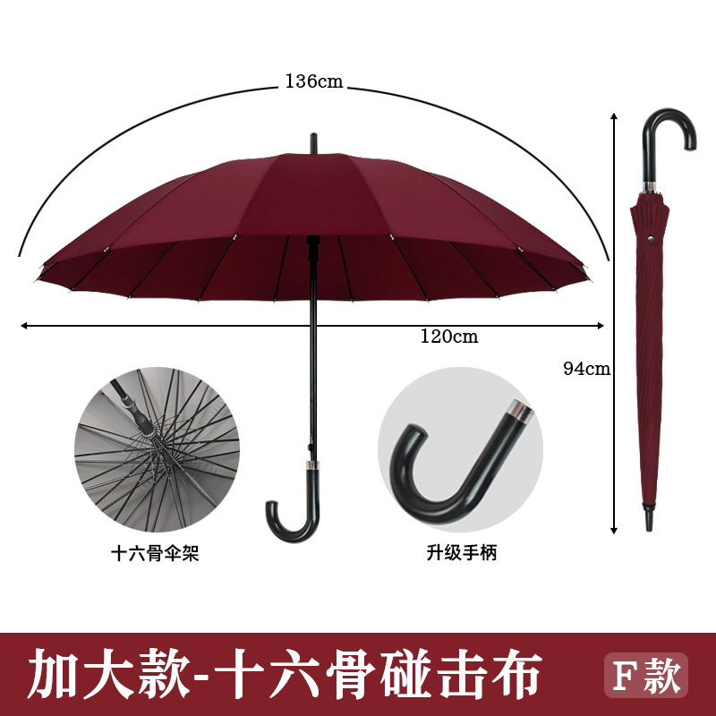 Усиленный ветрозащитный зонт с 16 ребрами — ударопрочная ткань — бордовый