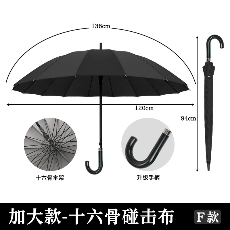 Усиленный ветрозащитный зонт с 16 ребрами — ударопрочная ткань — черный