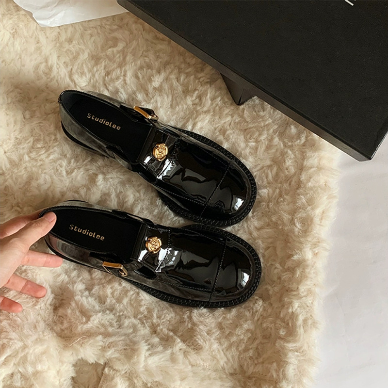 Grape Mom studiolee Элегантная пряжка с круглой головкой Camellia с толстым каблуком Толстая Нижняя увеличивающая рост кожаная обувь Мэри Джейн для женщин