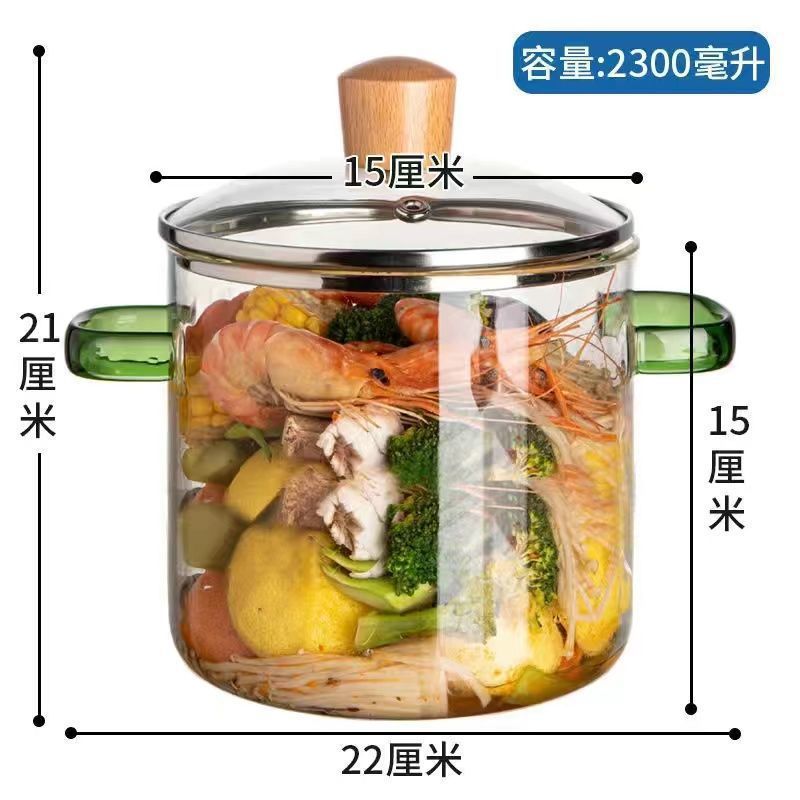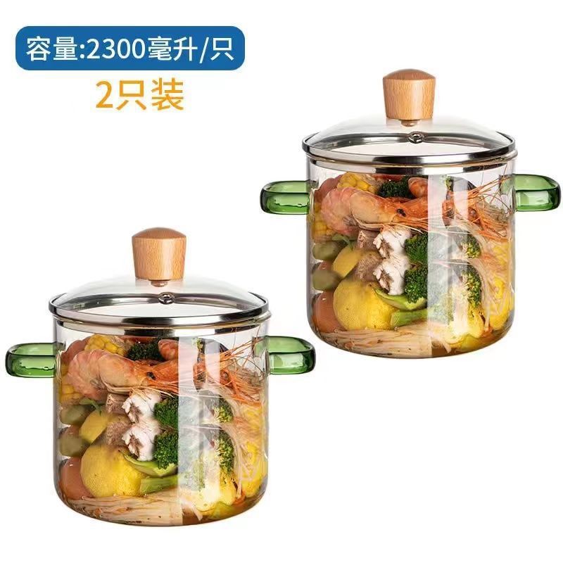 *2 стеклянные кастрюли с деревянной ручкой с защитой от ожогов [можно использовать на открытом огне] компенсация возгорания