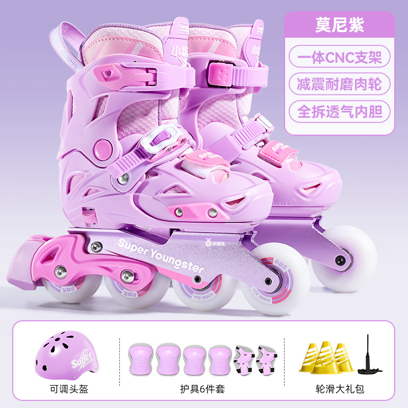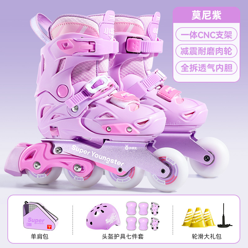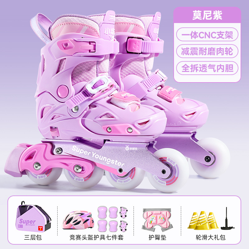 Moni Purple - одинарные туфли + защита шлема + сумка через плечо [интегрированный кронштейн с ЧПУ + колесо из цельного мяса]