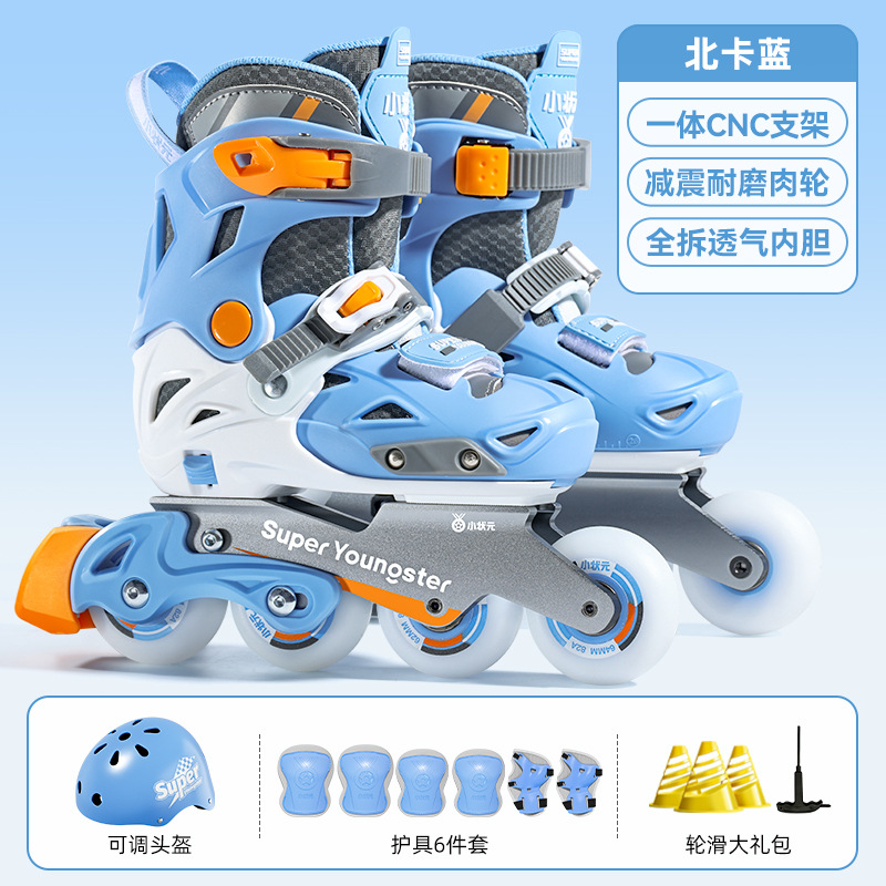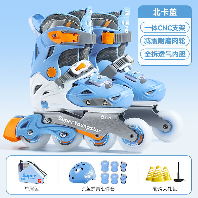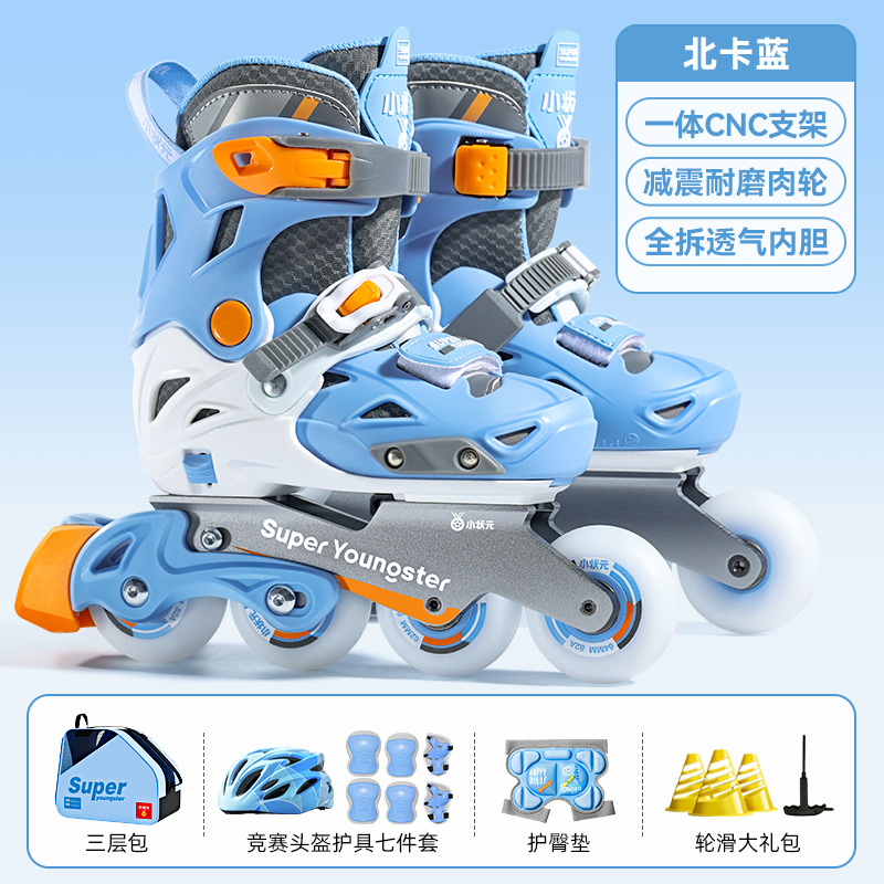 Северная Каролина Синий — одинарные туфли + защита для шлема для соревнований + трехслойная сумка [интегрированный кронштейн с ЧПУ + колесо из цельного мяса]