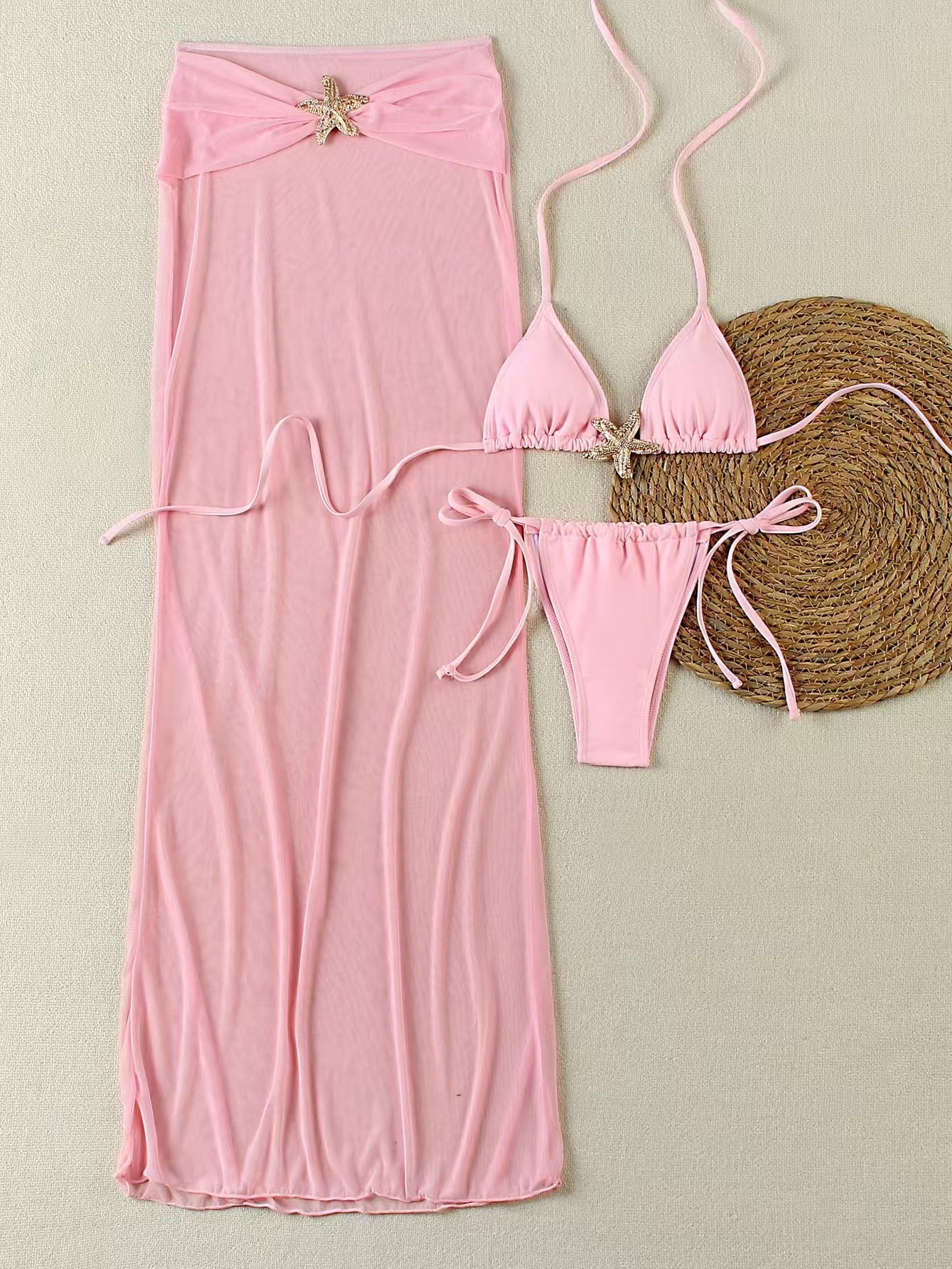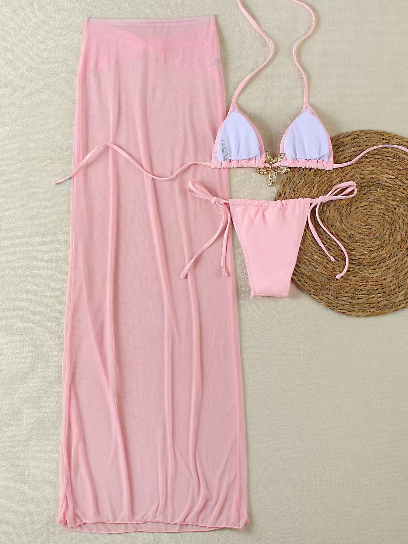Главная страница > Комплект женской одежды 2026: сексуальный купальник-бикини с юбкой, эластичный, из трех предметов, для пляжа, в европейском и американском стиле