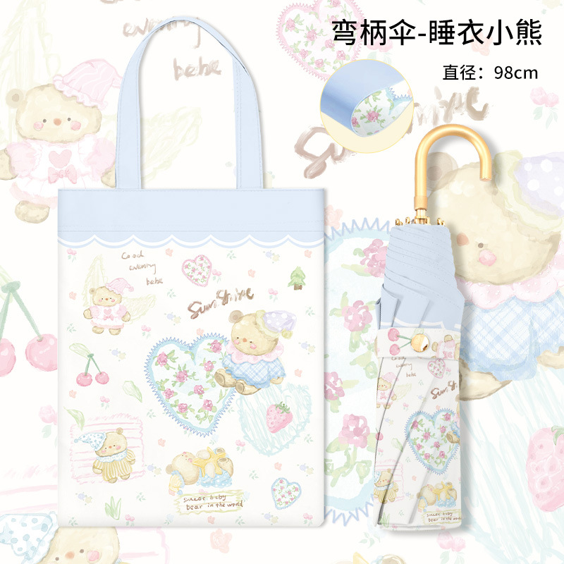 [Бесплатная сумка для переноски] 70% off Золотая изогнутая ручка, клеевая пижама синего цвета с медведем, внешний цветок