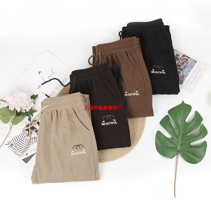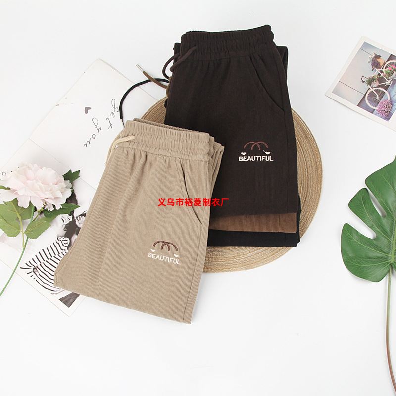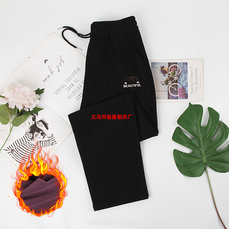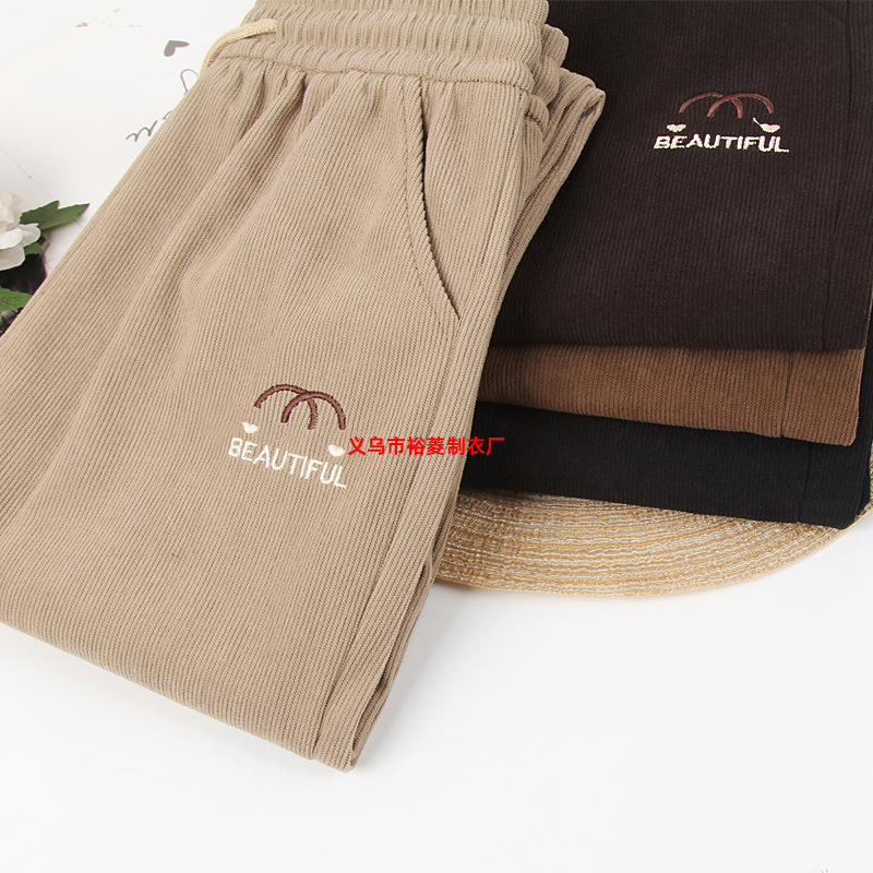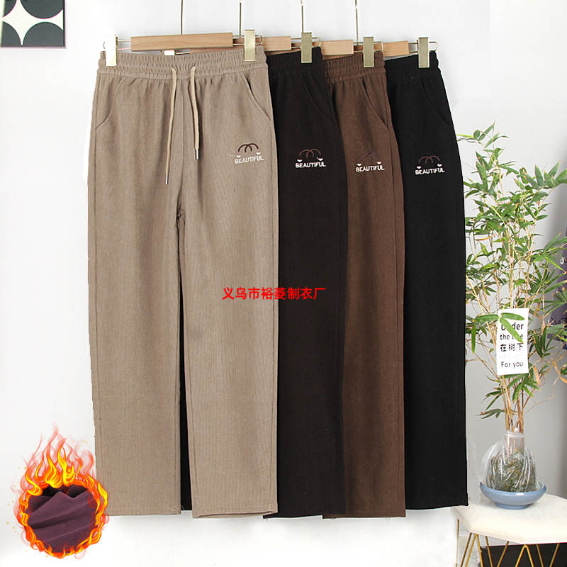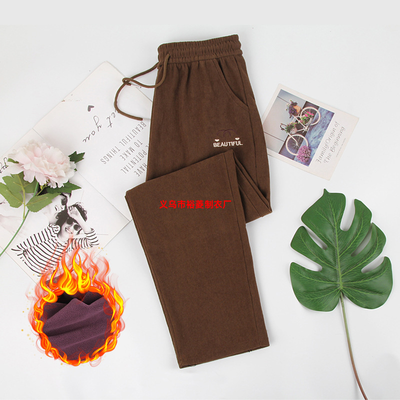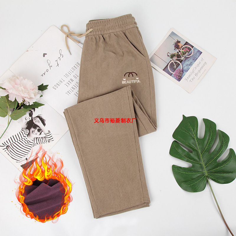 Главная страница > Новые осенне-зимние брюки из капокового вельвета с флисовой подкладкой для женщин, утепленные вельветовые брюки с высокой талией на шнурке, повседневные свободные женские брюки.