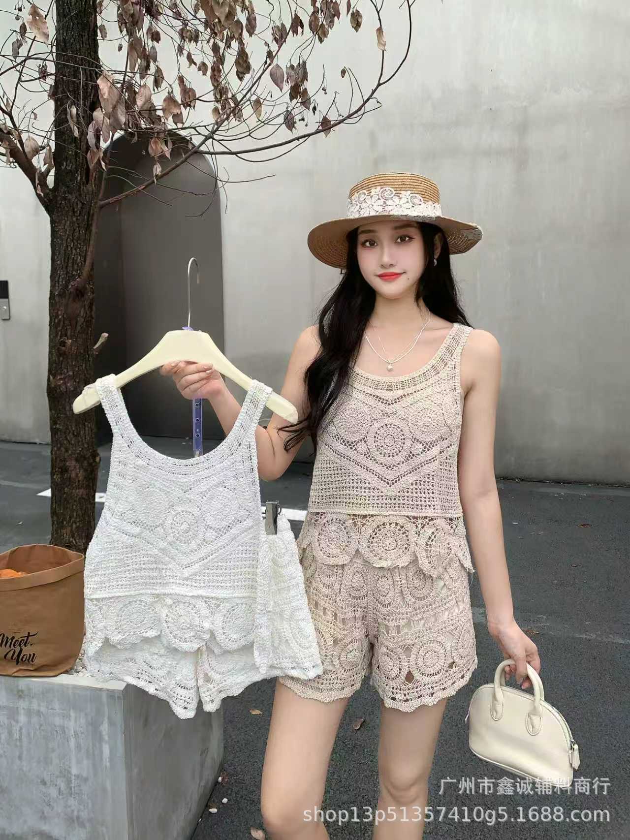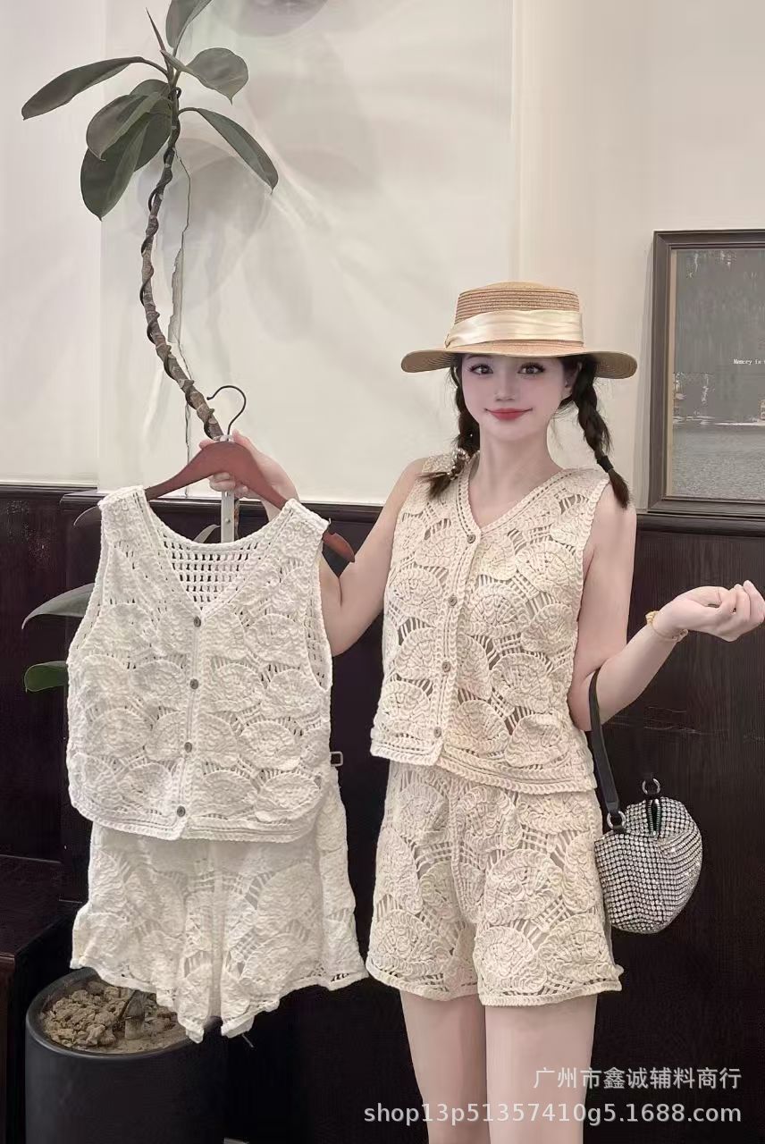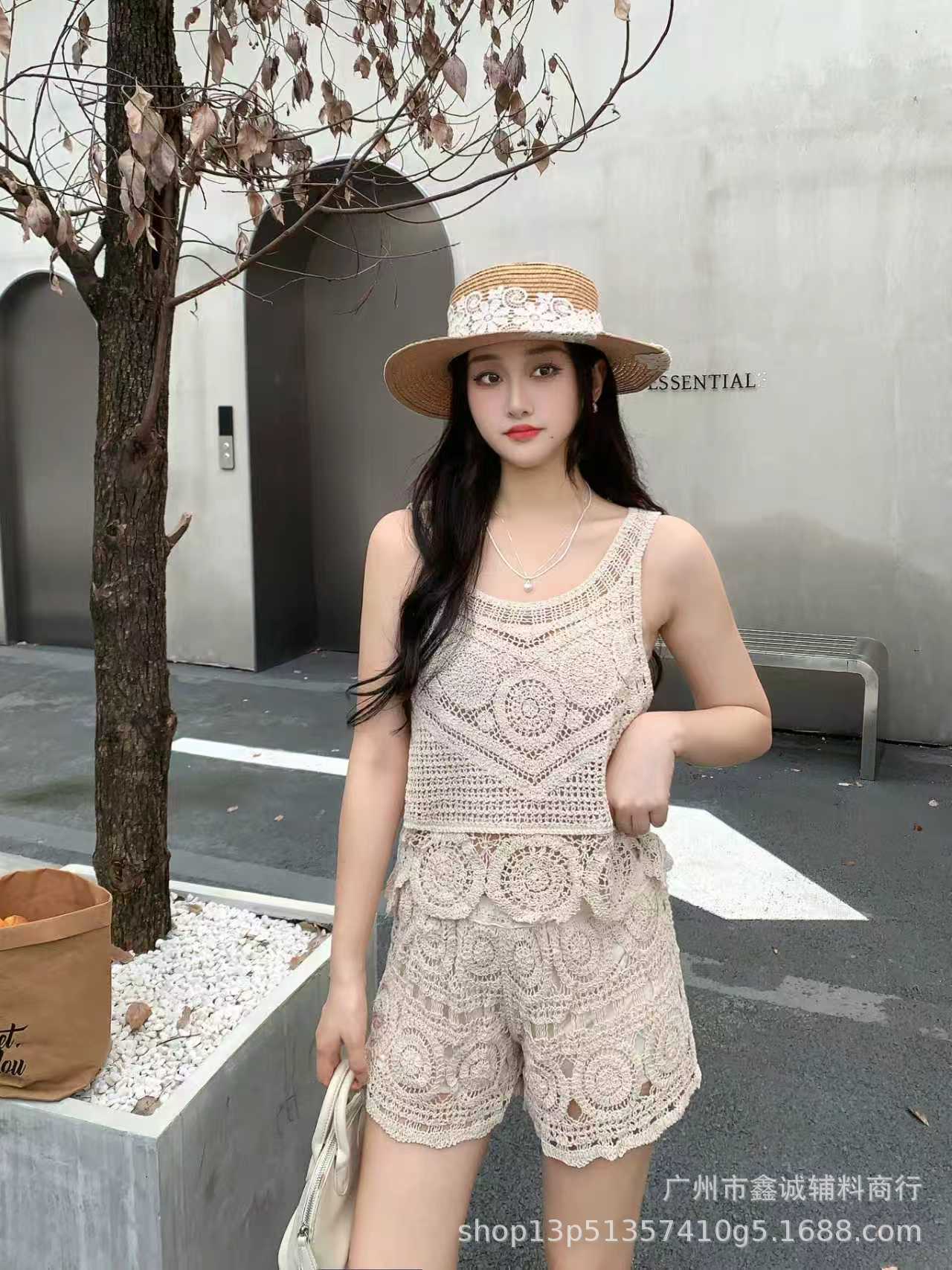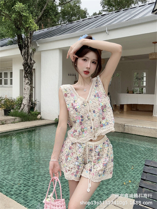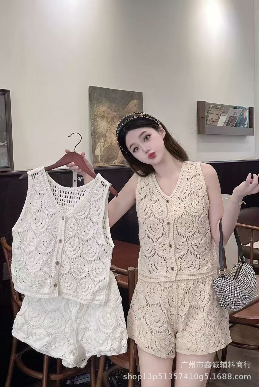 Главная страница > Японская корейская версия трикотажного набора с полым крючком женский летний сладкий квадратный воротник камзол жилет широкие шорты из двух частей