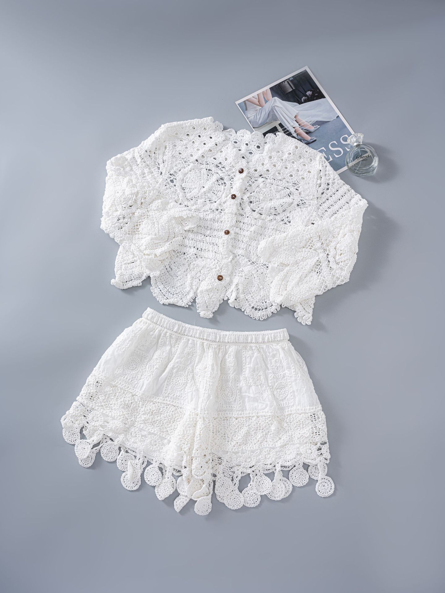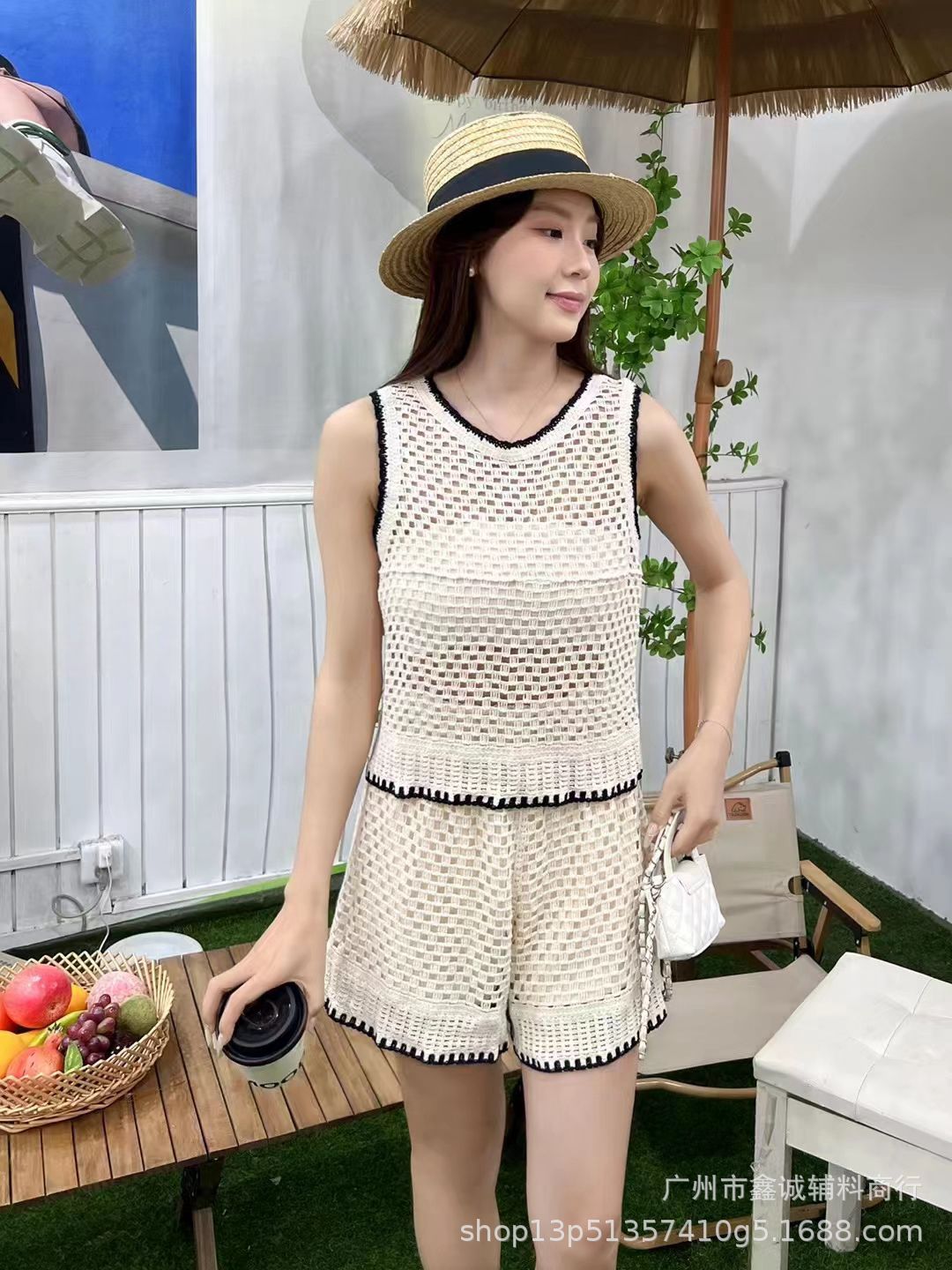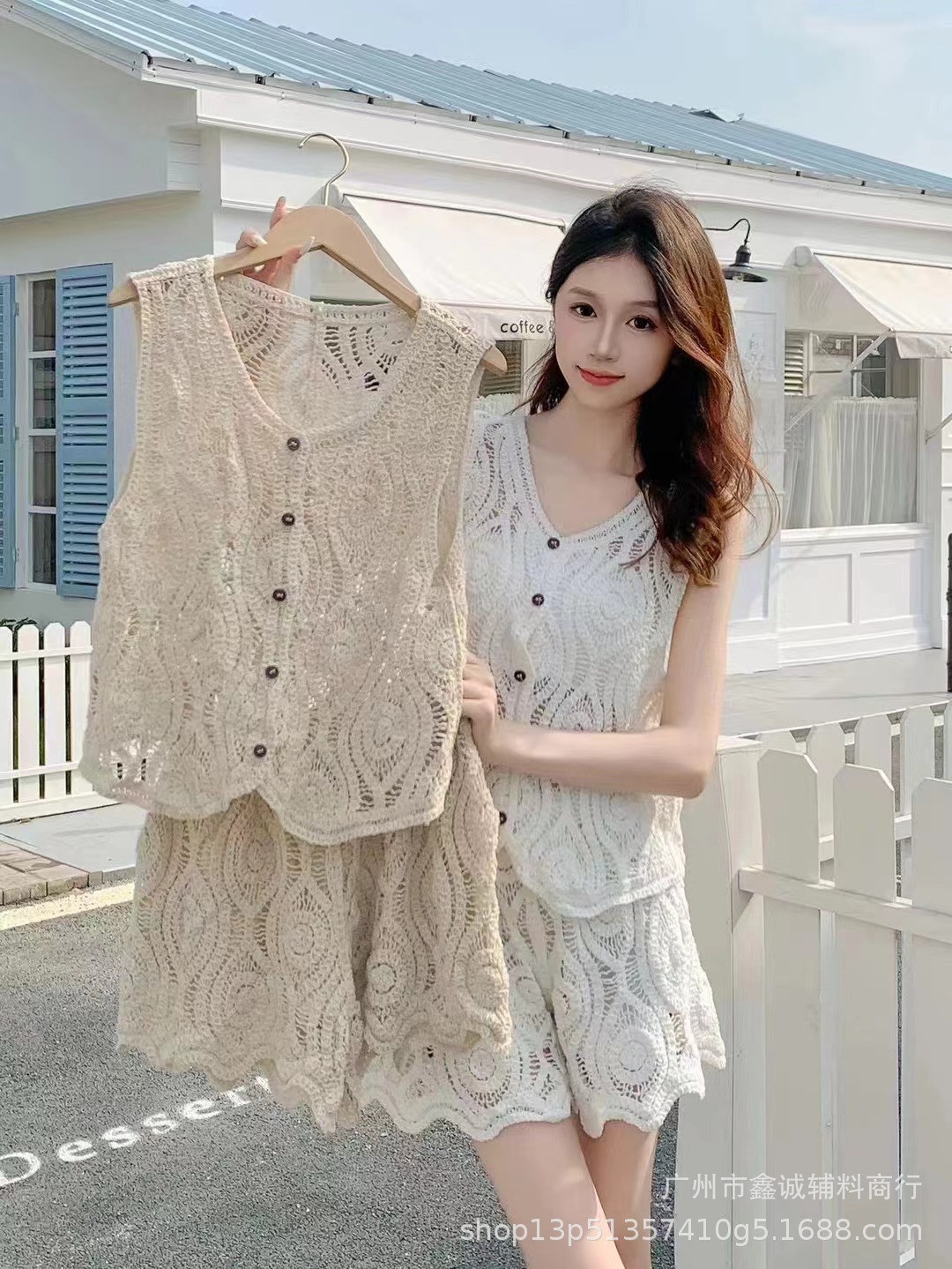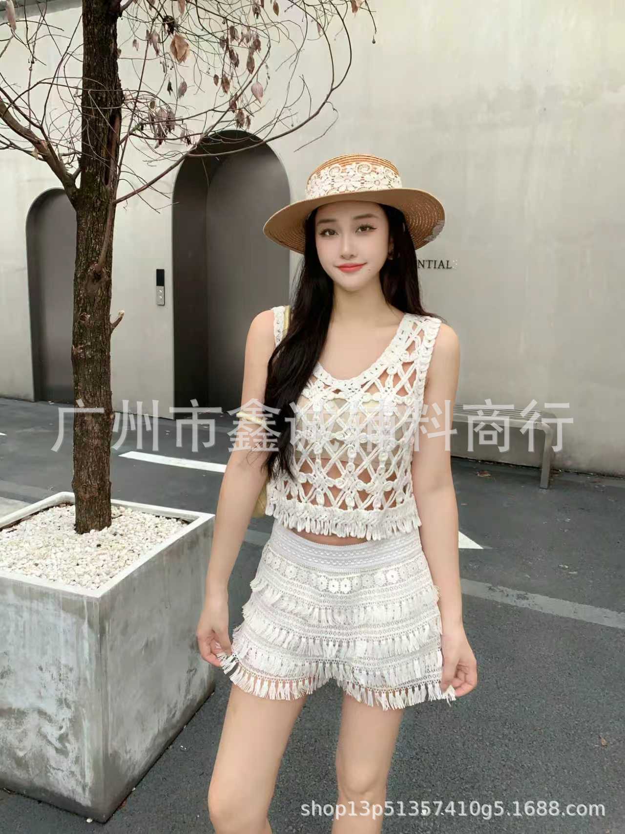 Главная страница > Японская корейская версия трикотажного набора с полым крючком женский летний сладкий квадратный воротник камзол жилет широкие шорты из двух частей
