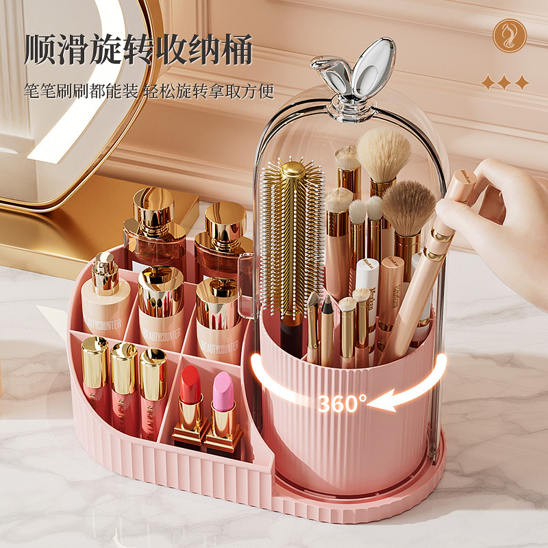 Туба для хранения кистей для макияжа, вращающийся пылезащитный туалетный столик, ящик для хранения косметики, стеллаж для хранения помады, теней для век, настольный держатель для ручек