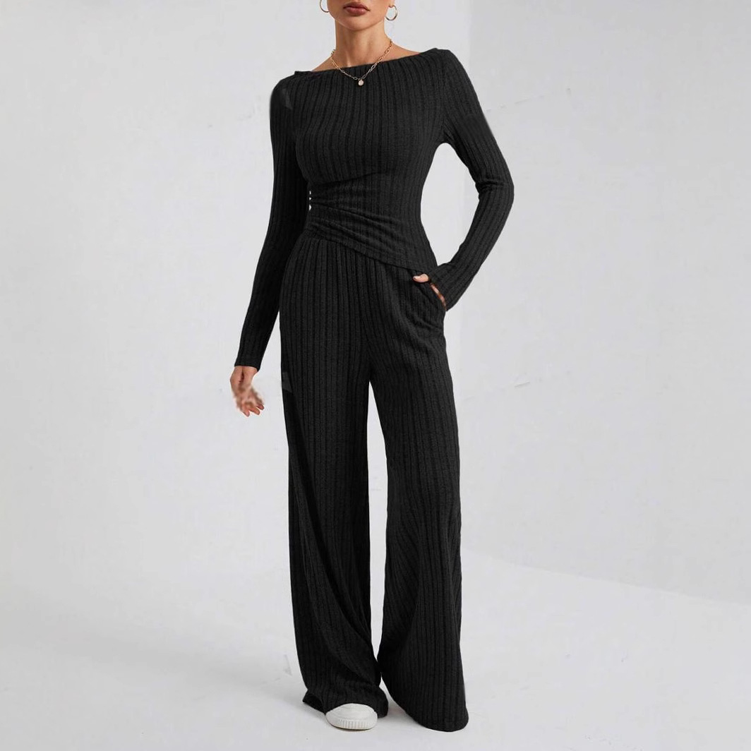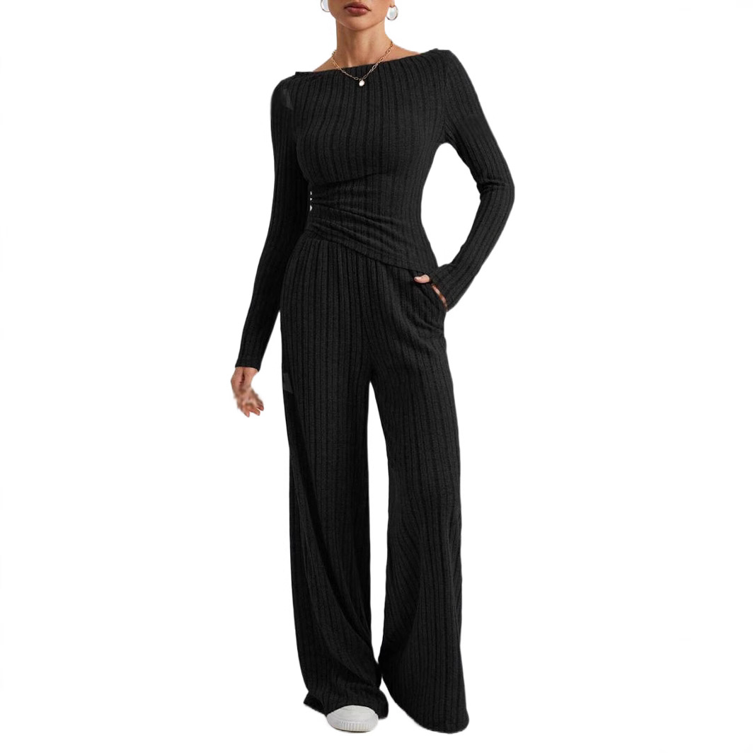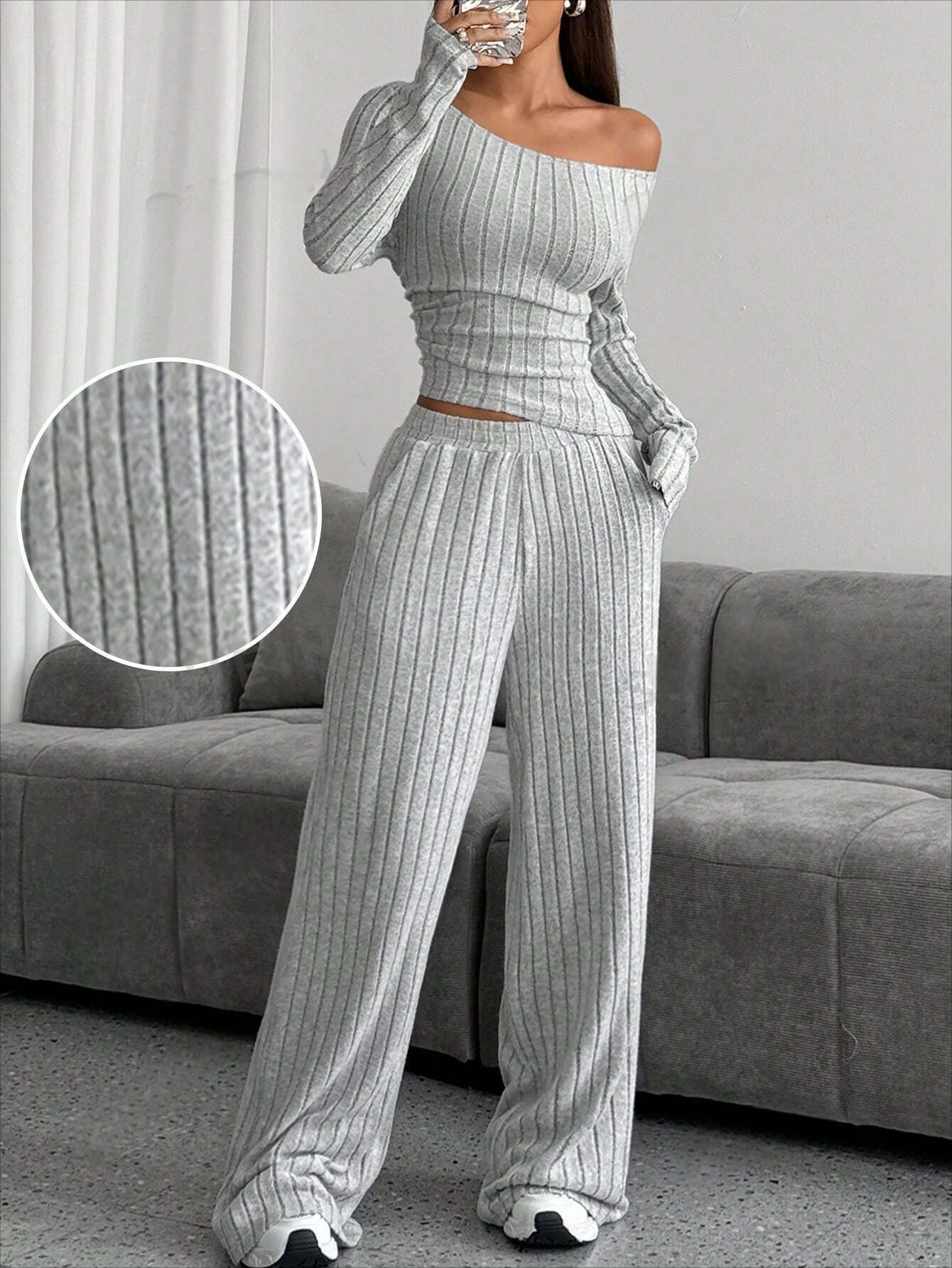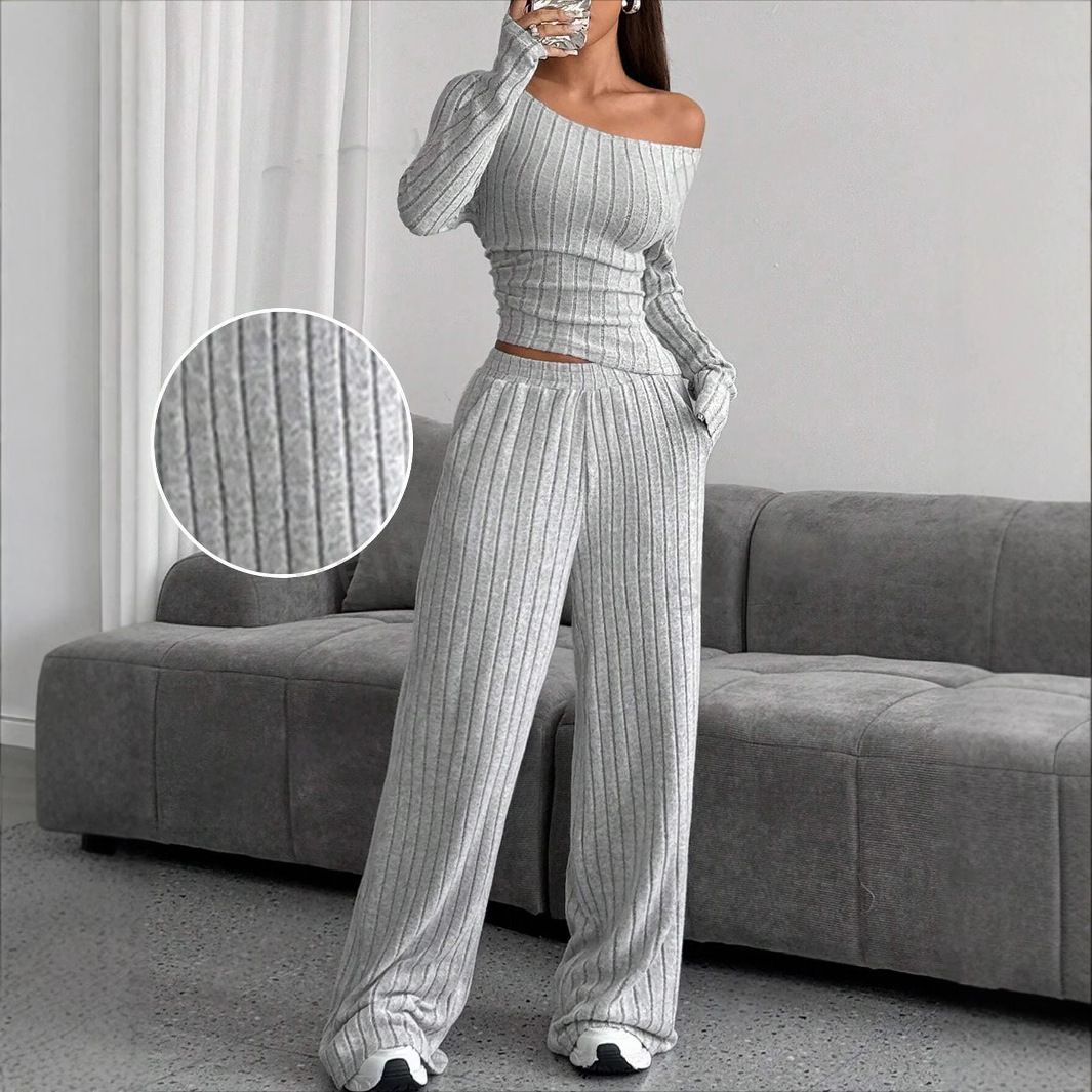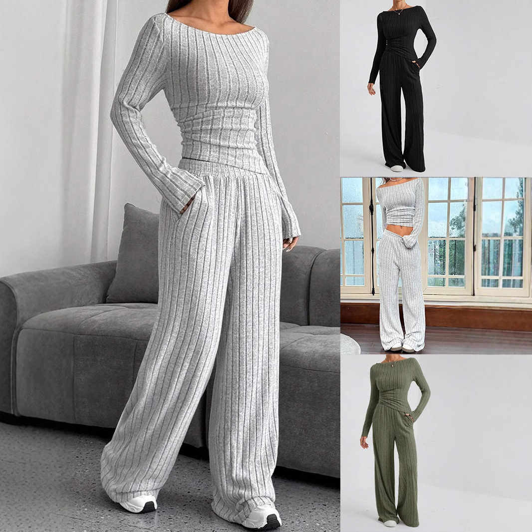 Главная страница > Европейские и американские осенние и зимние повседневные сплошные полосатые трикотажные костюмы с длинными рукавами