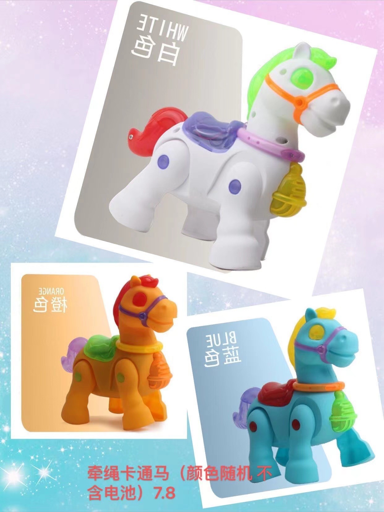 Светящийся музыкальный поводок мультяшный лошадь (без батареек, смешанных цветов)