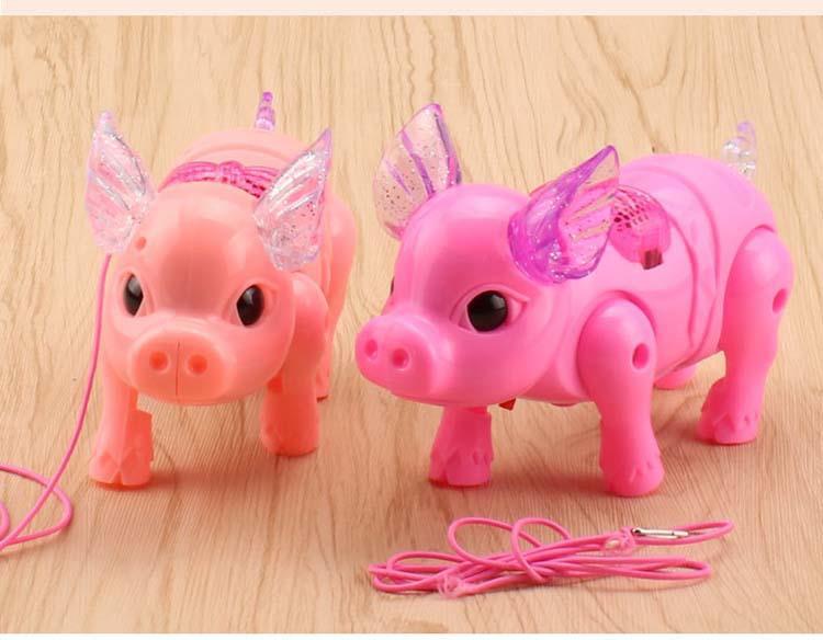 Поводок светящаяся музыкальная свинья (без батареек, смешанных цветов)
