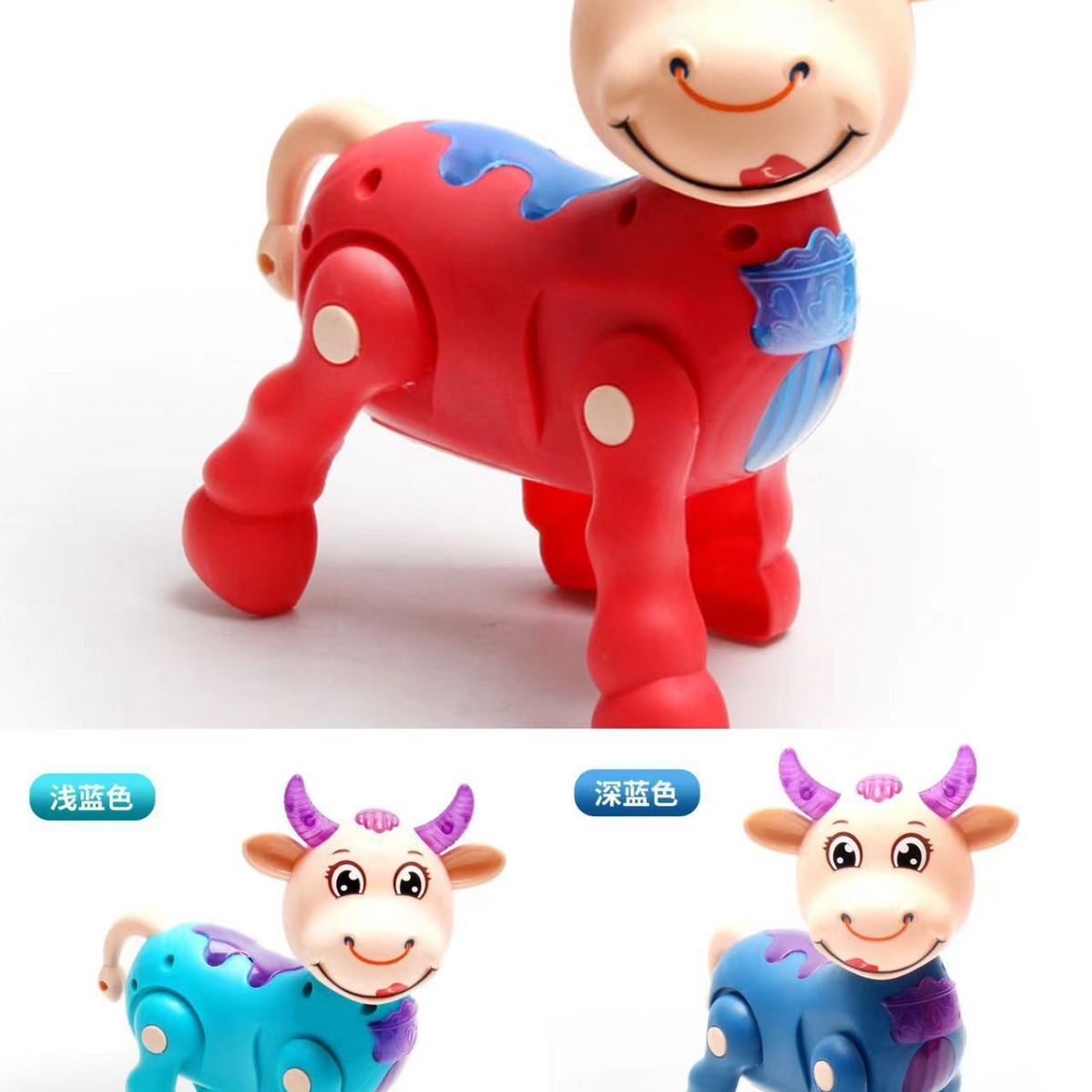 Светящийся музыкальный поводок, милая корова (без батареек, разных цветов)