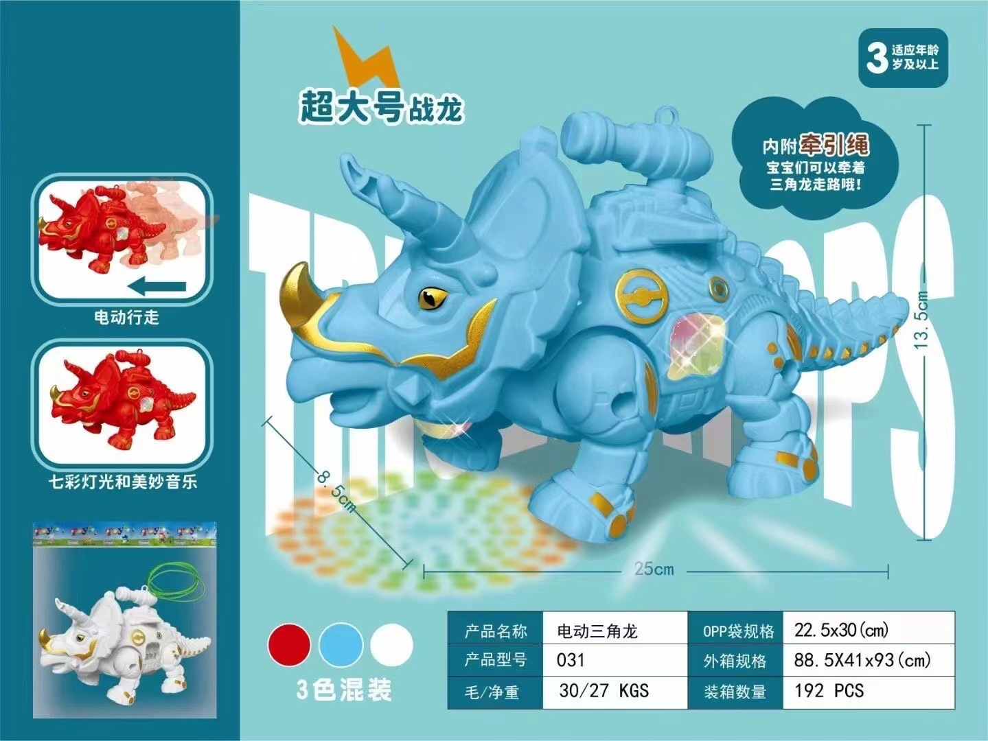 Светящийся музыкальный поводок Трицератопс (включая батарейки, смешанные цвета)