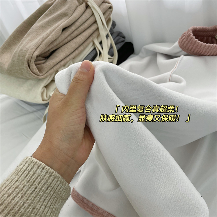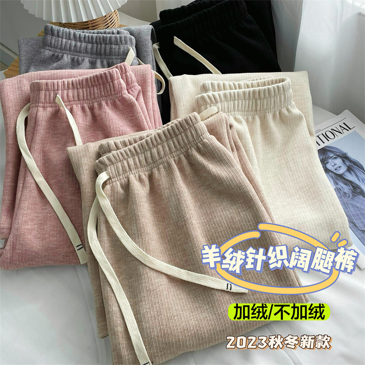 Главная страница > Женские брюки с широкими штанинами из искусственного кашемира, Новинка осени и зимы, стройнящие прямые брюки с высокой талией, брюки с драпировкой из клейкого риса, повседневные брюки на флисовой подкладке