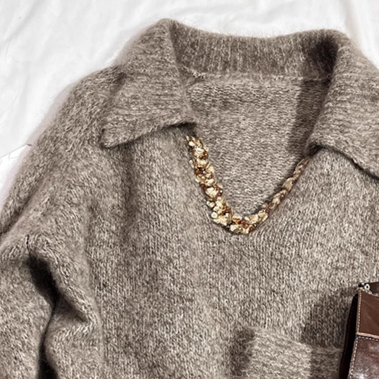 Главная страница > Ленивый продвинутый свитер с блестками V-образным вырезом женский зимний новый корейский толстый свитер мягкий клейкий свитер