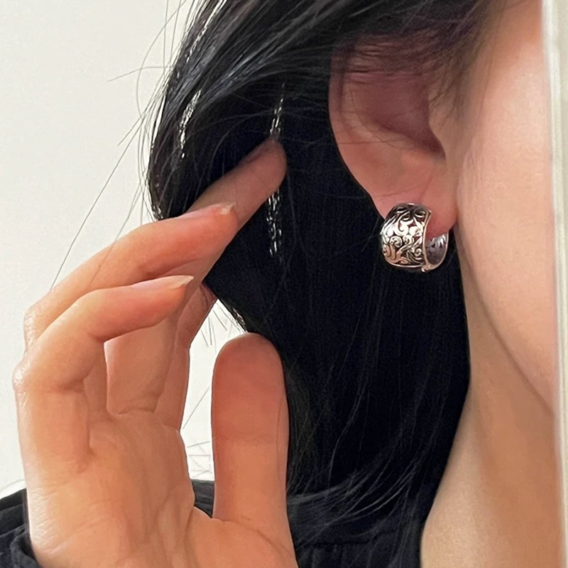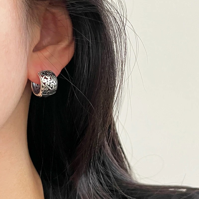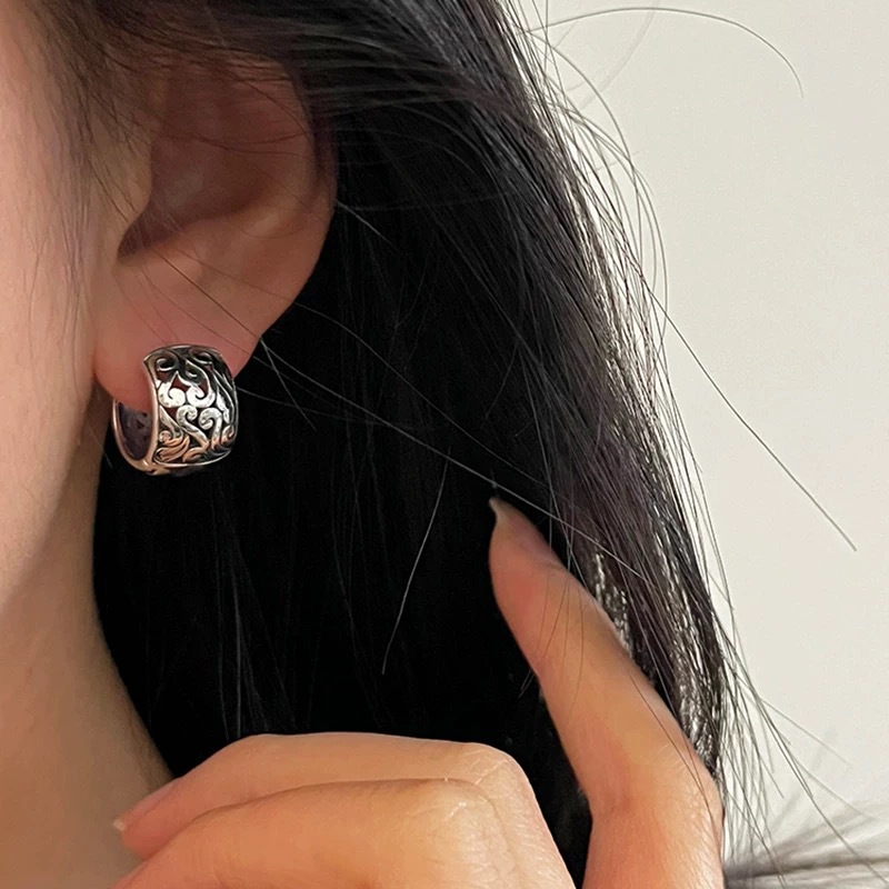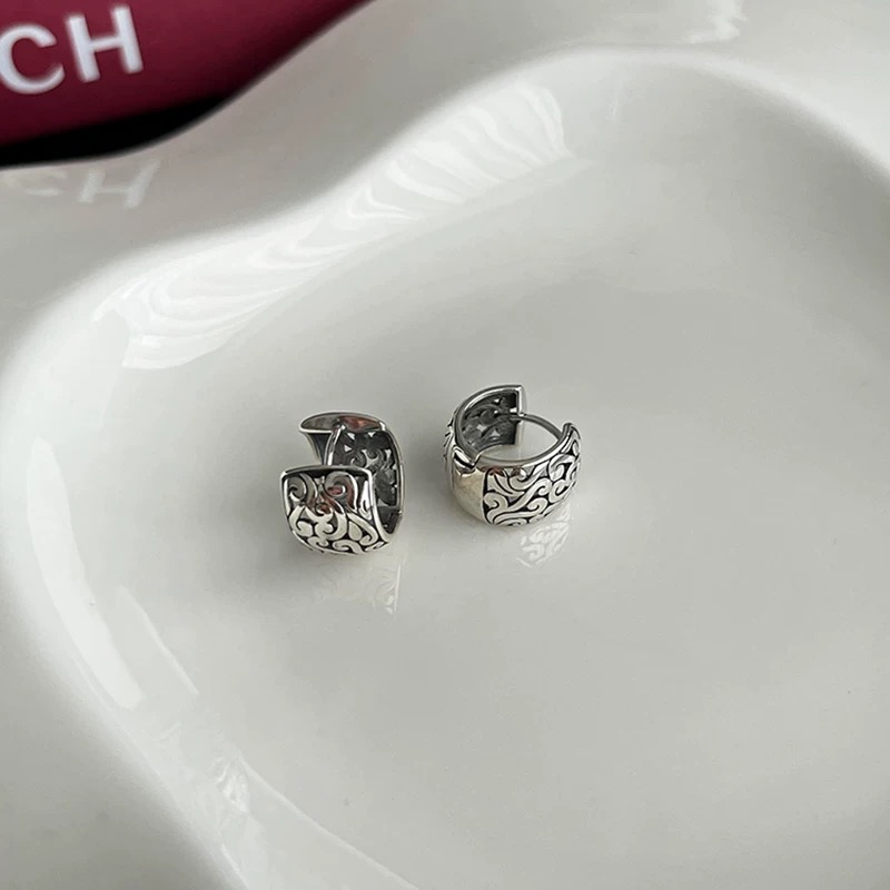 Главная страница > Геометрические кружки серьги женские ретро модные старые узоры национальный прилив S925 посеребренные иглы ушные пряжки Net красные серьги