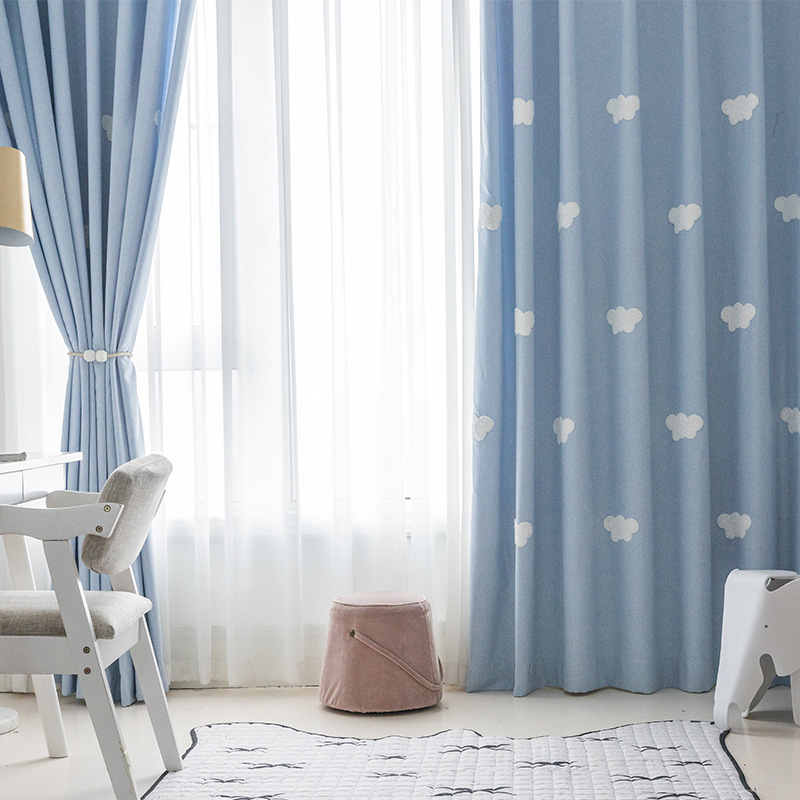 Главная страница > Вышитые облака Синяя ткань Ткань для штор Утолщенный оконный экран Спальня Гостиная Детская комната Мальчики и девочки Мультяшное эркерное окно