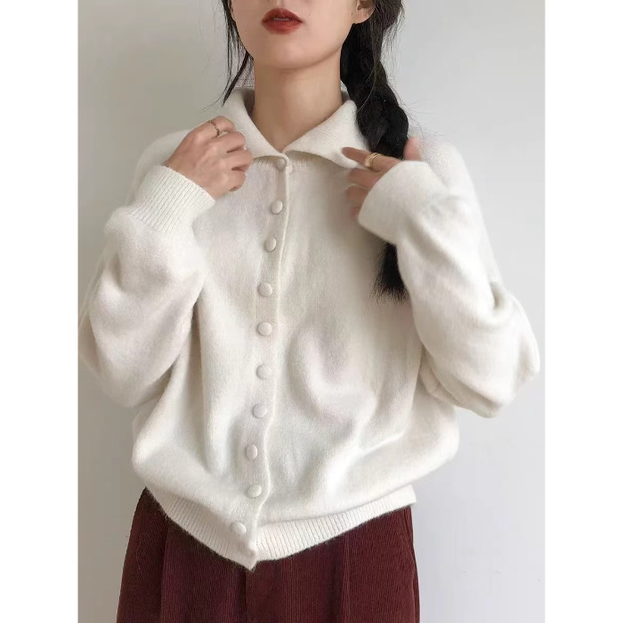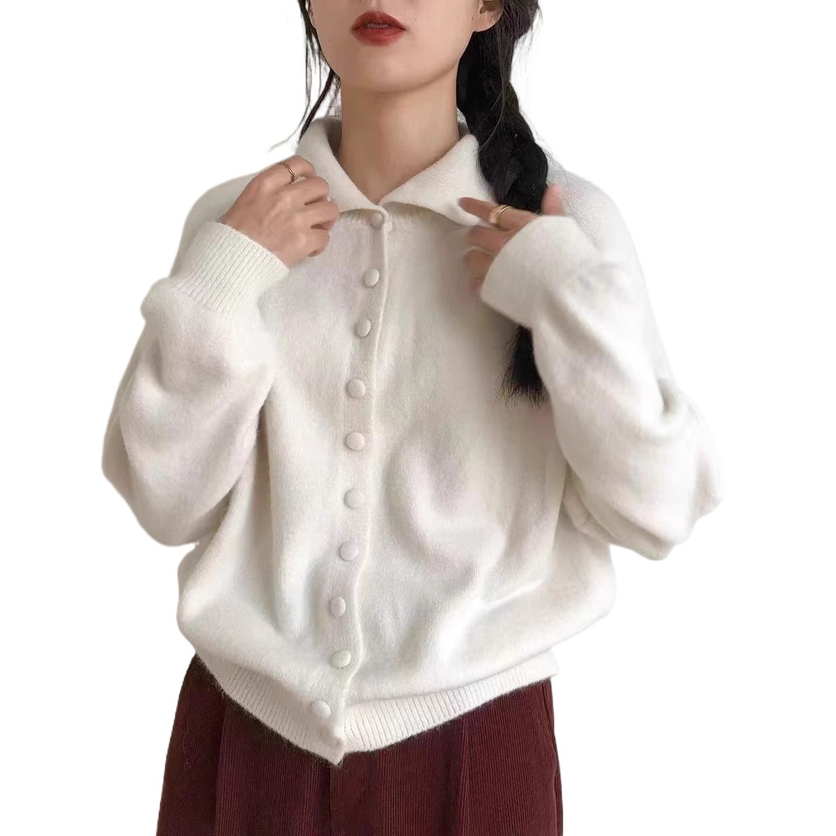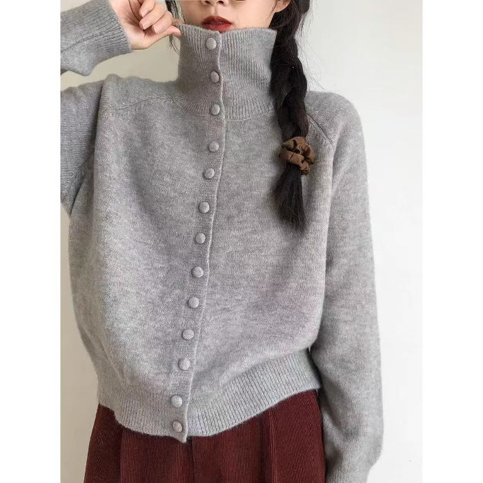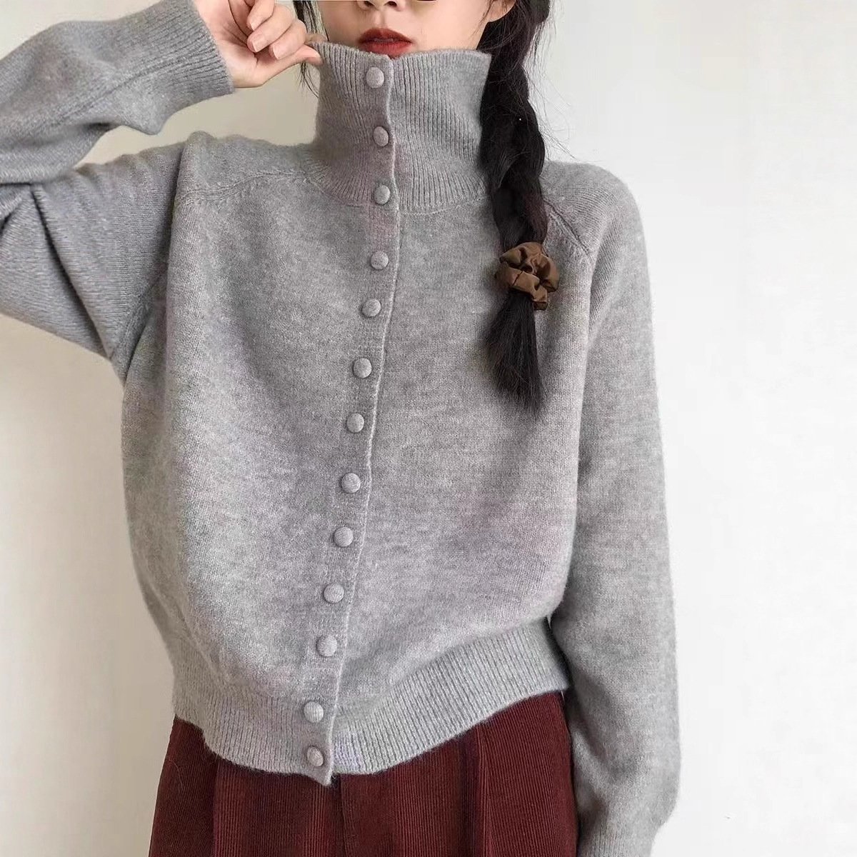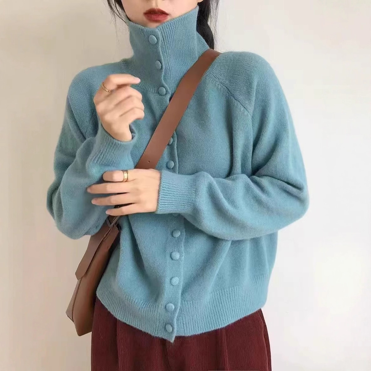 Главная страница > Мягкий и восковой однобортный вязаный кардиган с высоким воротником для женщин осенью и зимой, элитный свитер, уникальный и красивый топ с лацканами.