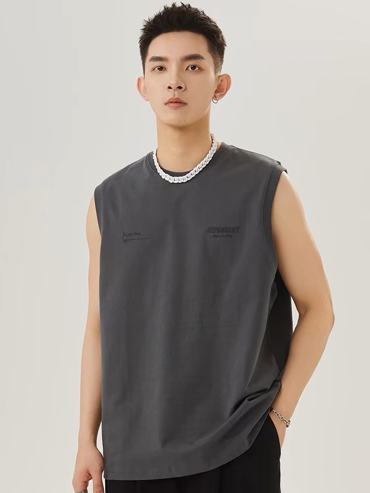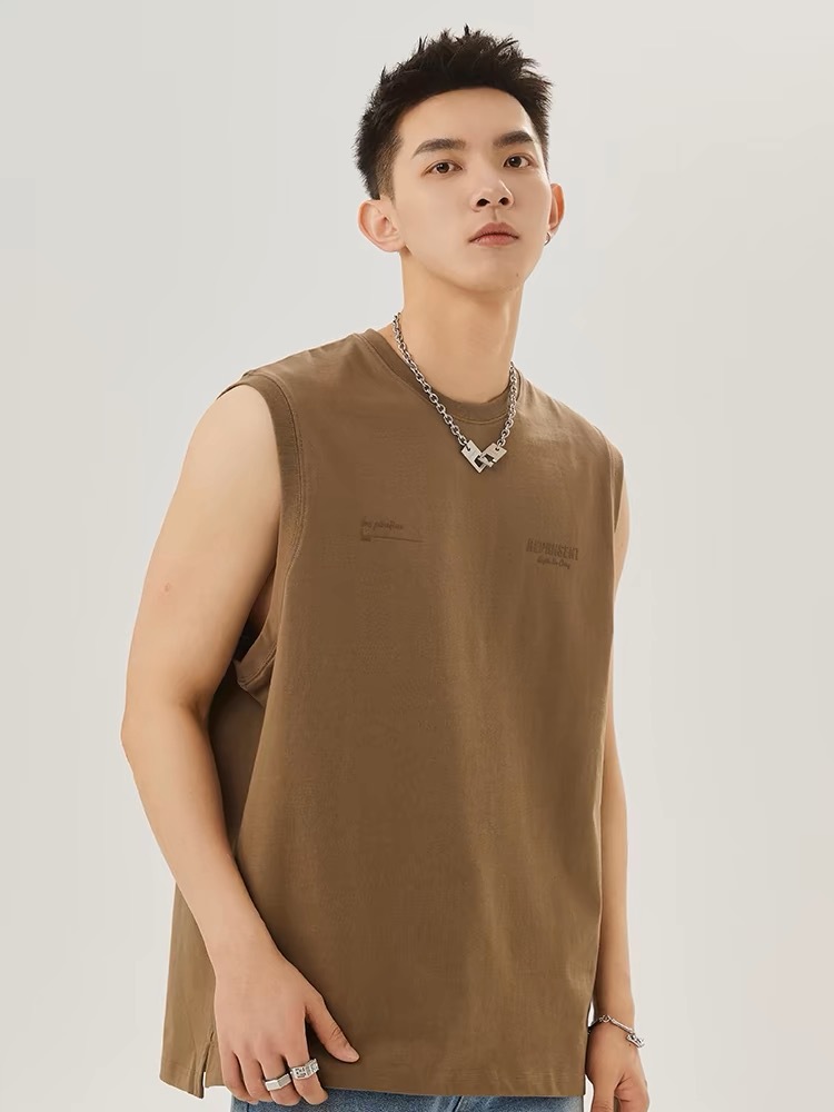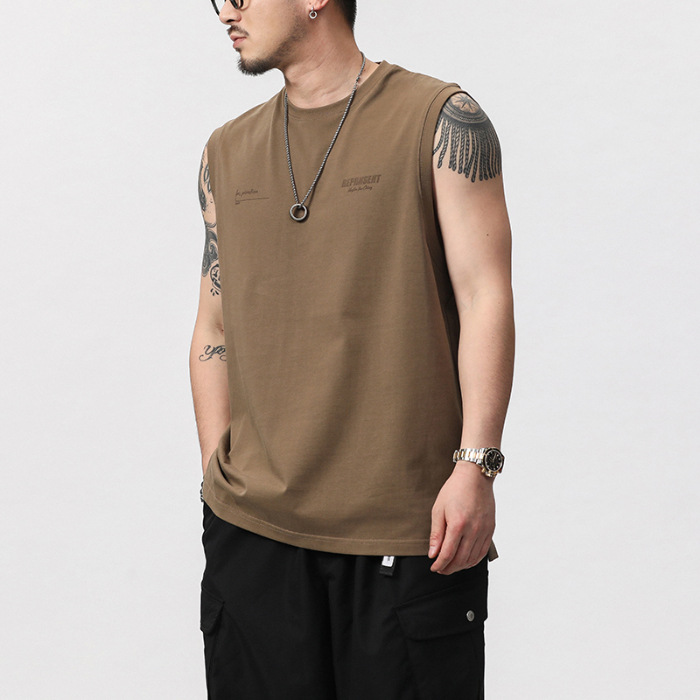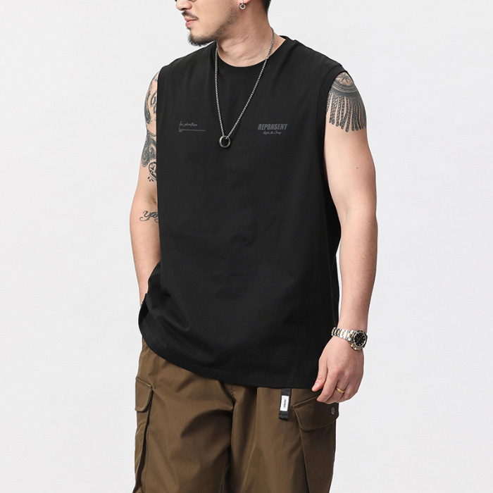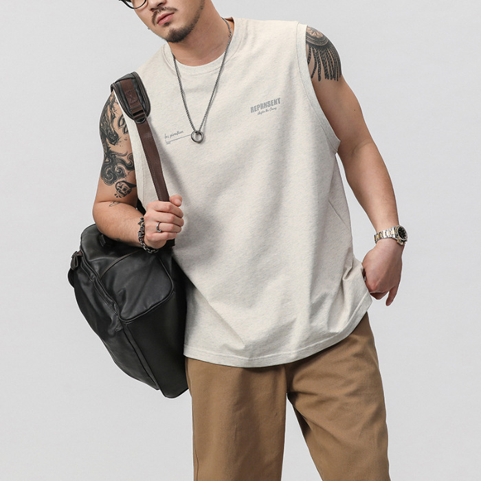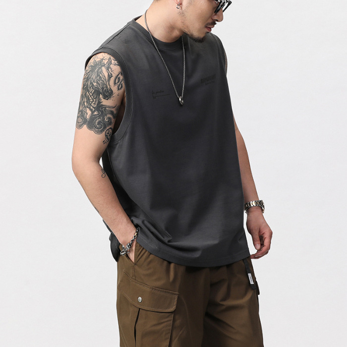 Главная страница > Тяжелая футболка в американском стиле ретро без рукавов, жилет, мужской летний свободный модный брендовый жилет с короткими рукавами, мужской повседневный Модный с коротким рукавом