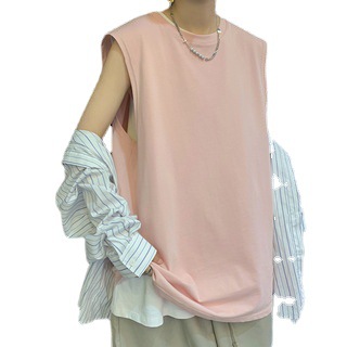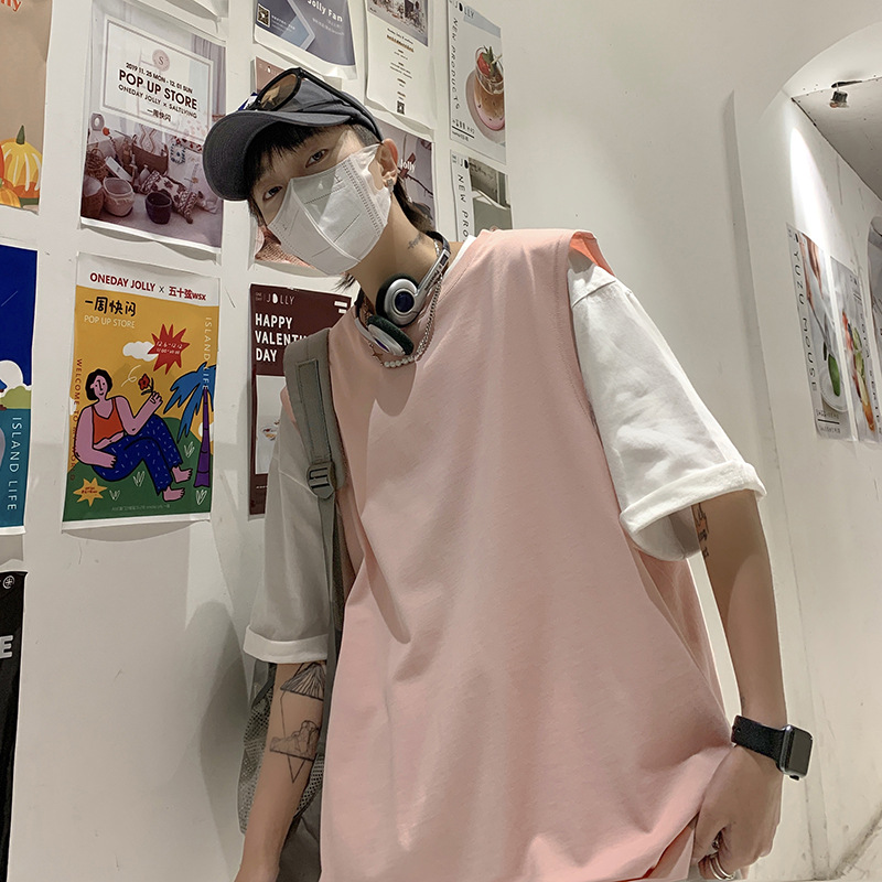 Мужской модный Свободный жилет, летняя розовая футболка больших размеров без рукавов, простой мужской жилет в гонконгском стиле, модный бренд
