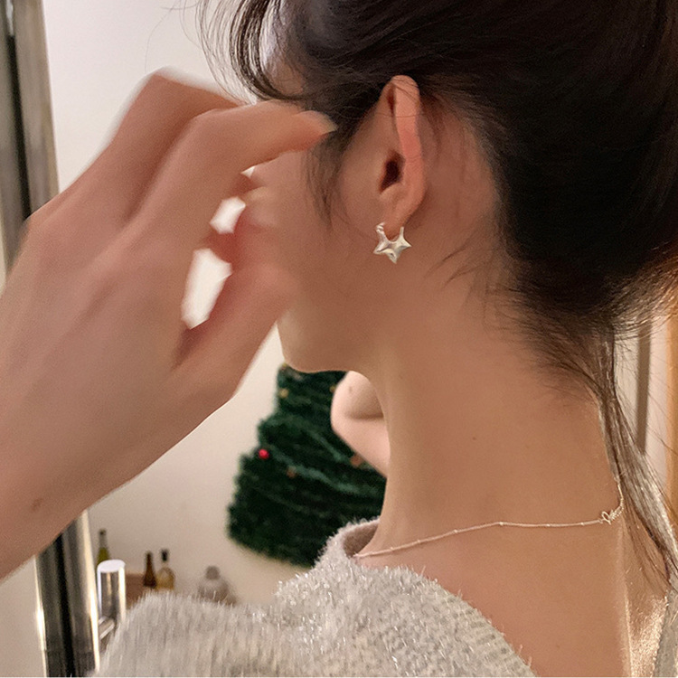 Главная страница > S925 Серебряные трехмерные пятиконечные звездочки Пряжка для ушей для женщин 2023 Новая Мода Индивидуальный темперамент холодный стиль Осень Новые серьги