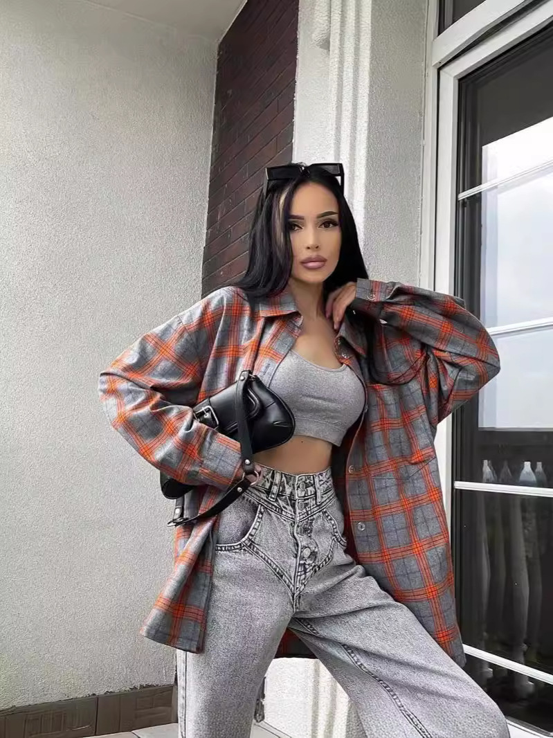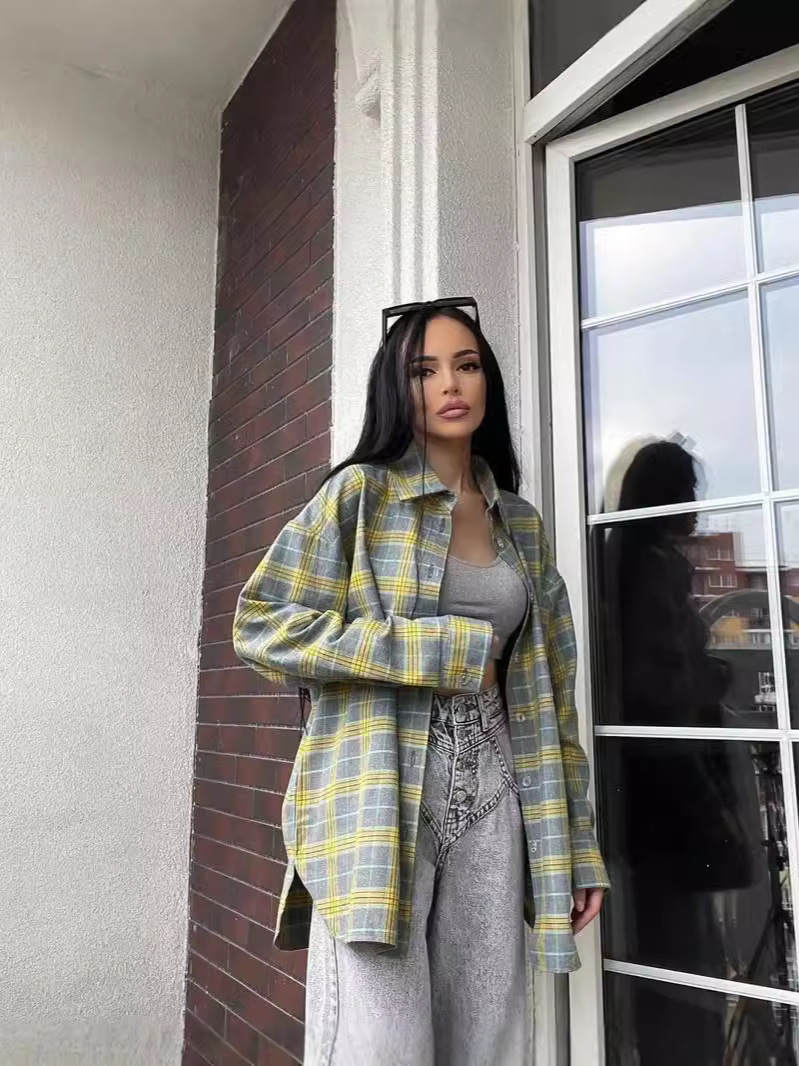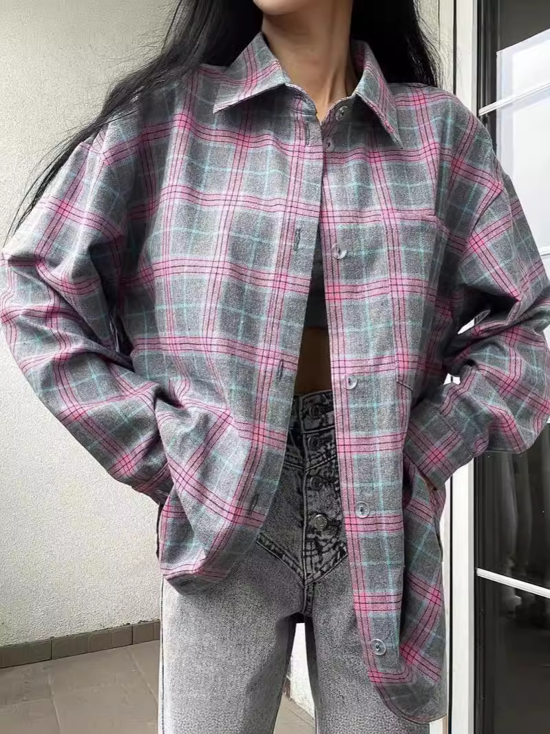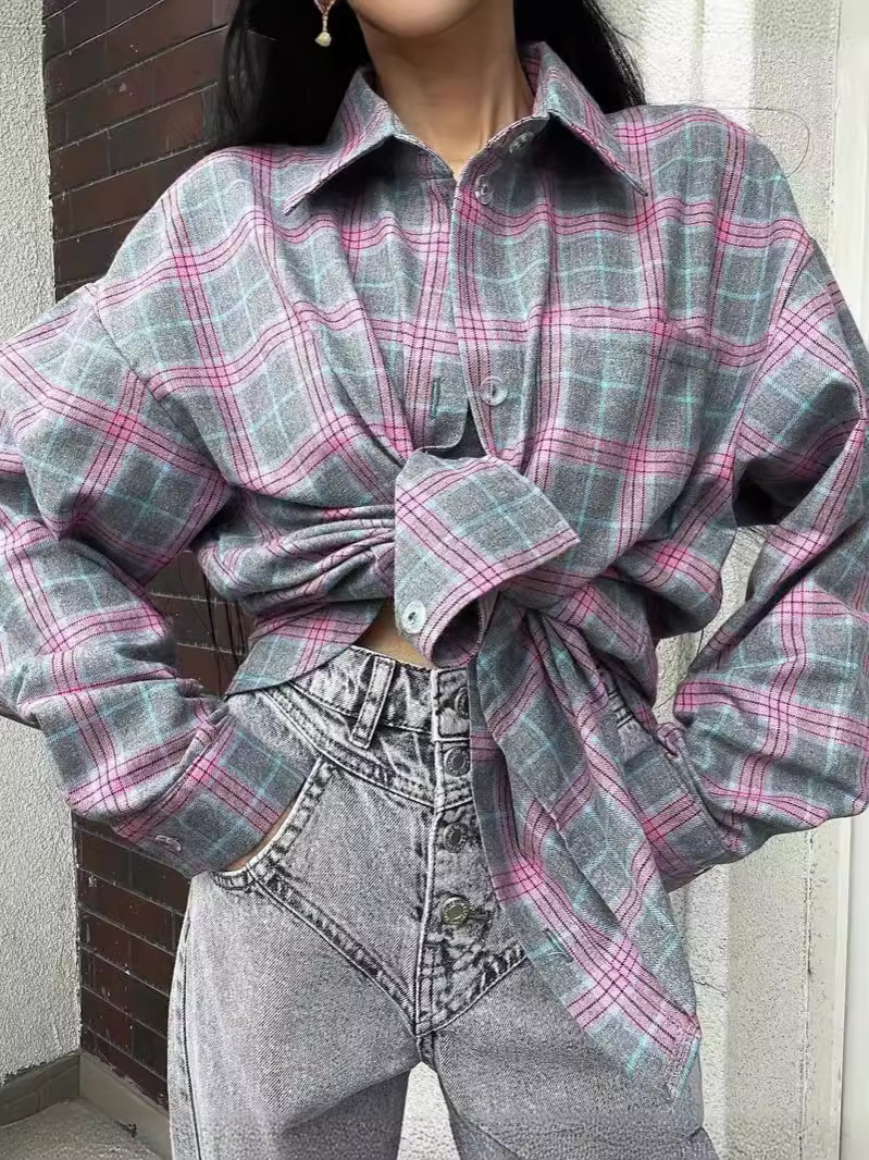 Главная страница > Европейские и американские Amazon трансграничные 2024 ретро дикие лацканы свободные клетчатые рубашки с длинными рукавами женские
