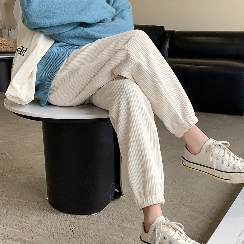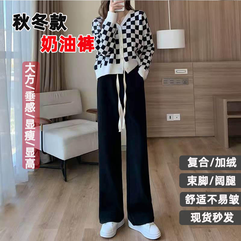 Главная страница > Брюки из синели с широкими штанинами из композитного кремового шелка, женские осенне-зимние утепленные брюки до щиколотки с завышенной талией на флисовой подкладке
