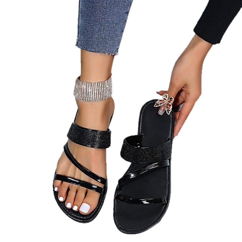 Главная страница > Трансграничный спот wish европейская и американская женская обувь для женщин 2025 новый летний закрытый носок сплошной цвет плоский каблуок тапочки женские сандалии