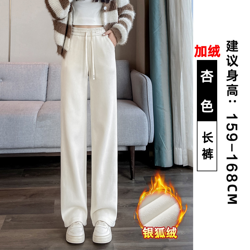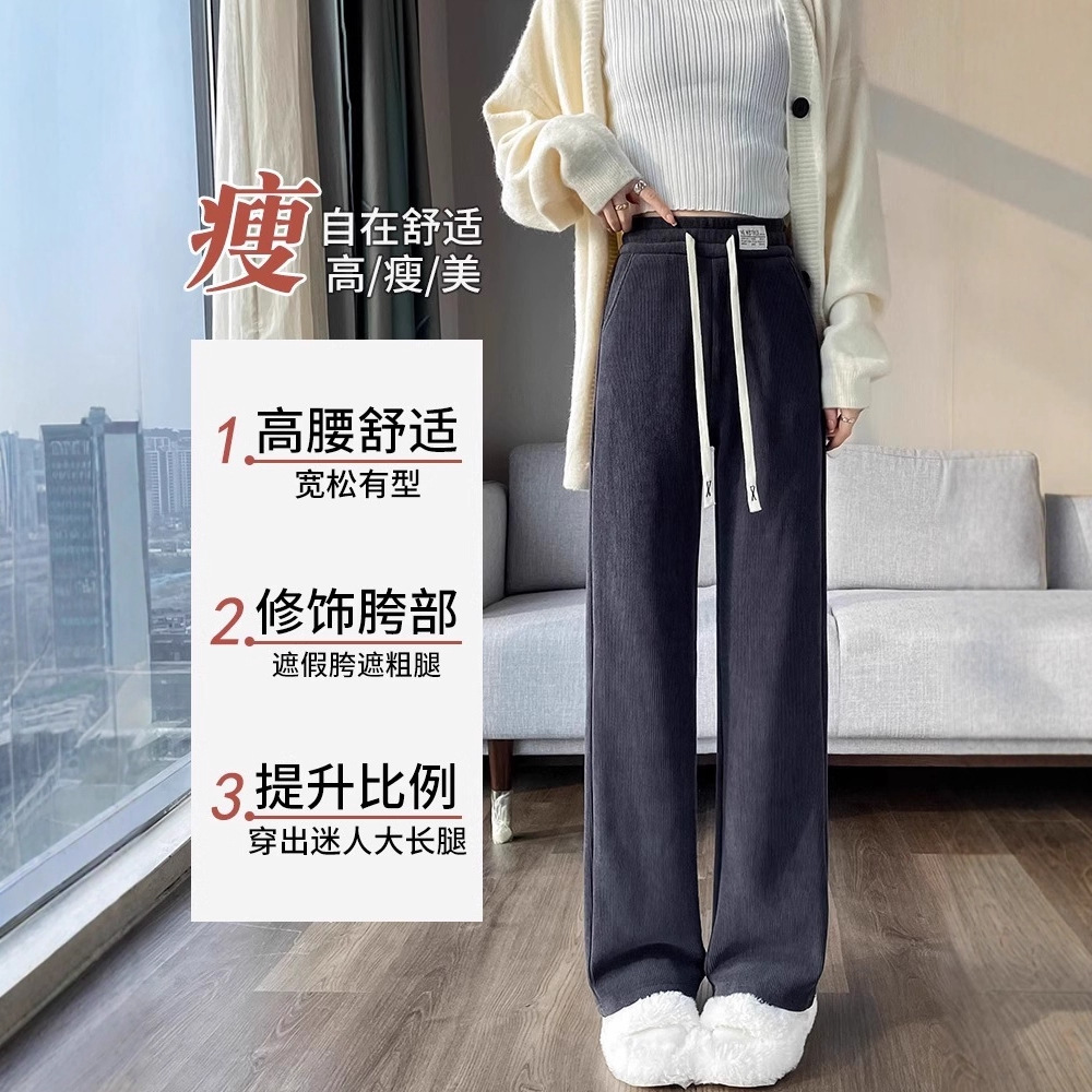 Главная страница > Вельветовые повседневные брюки для женщин, новая модель осень-зима 2025, флисовые спортивные штаны, с высокой талией, драпированные, облегающие, укороченные широкие брюки.